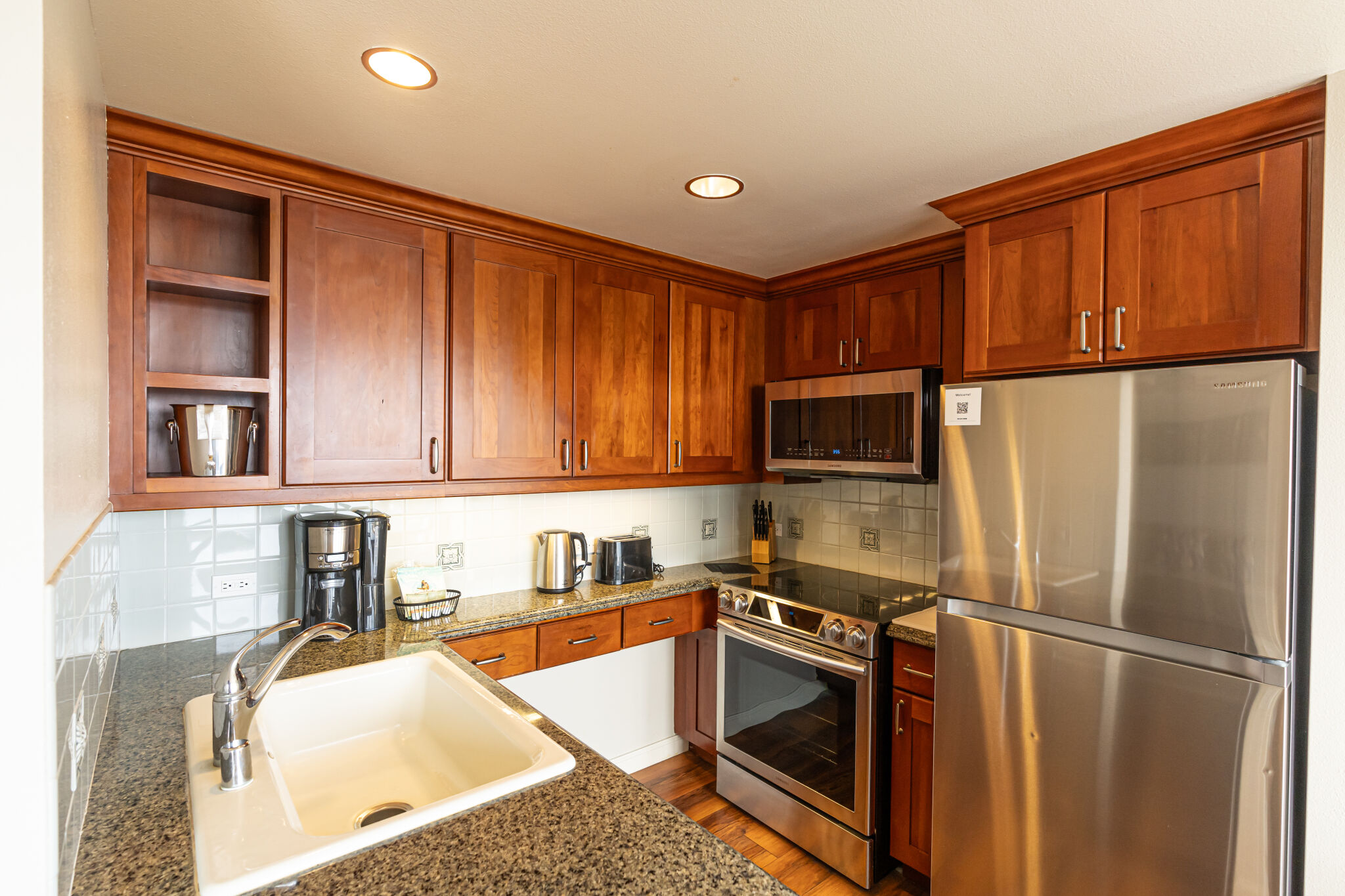 The Grand Waikikian offers beautiful accommodations easily matching and exceeding those of a premiere hotel. All of the one-bedroom, two-bedroom and three-bedroom units feature a private balcony with fantastic ocean or city views. Relax in your spacious living area, dine together as a group at the dining table and whip up meals at your convenience in the full kitchen. In-room washers and dryers make tackling laundry easy, and complimentary Wi-Fi keeps you connected.