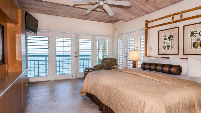 The Galleon Resort offers a multitude of accommodations in studio, one-bedroom and two-bedroom configurations. Studios house two people and are equipped with a small refrigerator, coffee maker and microwave oven. One-bedroom suites sleep up to four while most two-bedroom suites sleep up to six, while both include a full kitchen, dining area and decked out living area. Each is lovingly furnished with sandy earth tones, rattan furniture and tropical prints that perfectly set the mood for your stay in Key West.