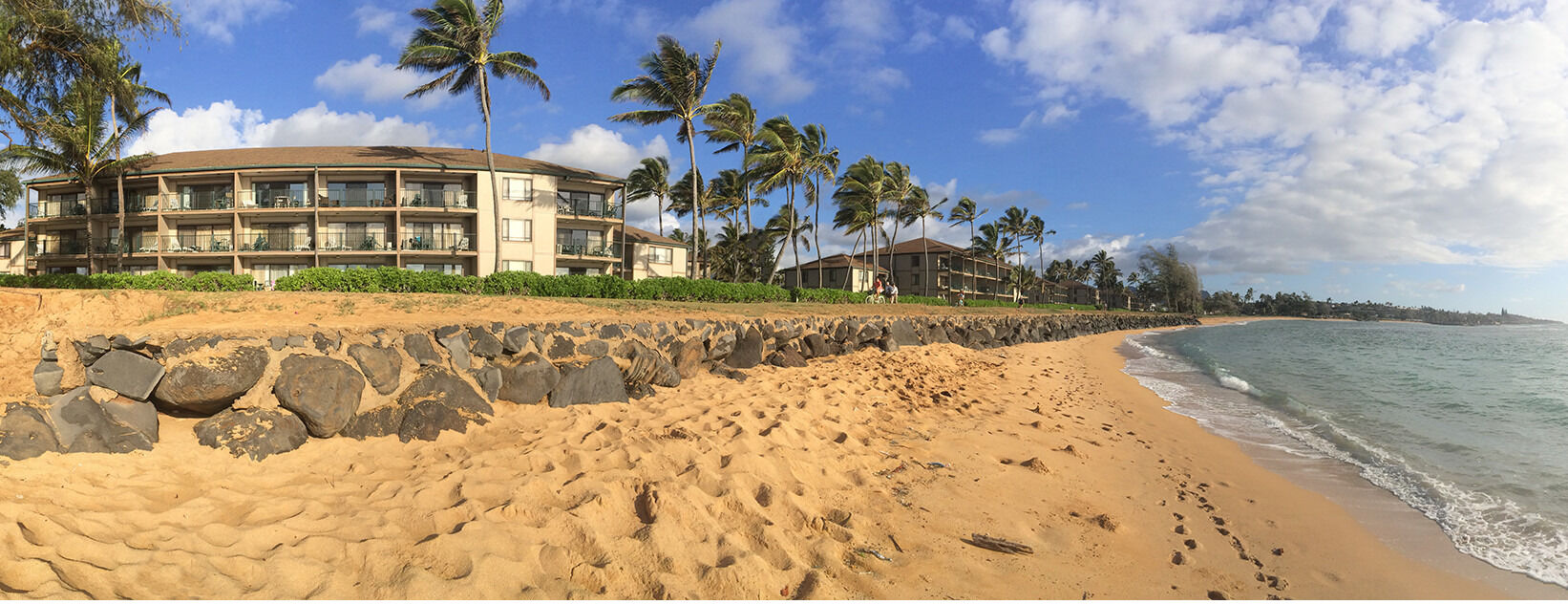 Pono Kai spans eleven acres of beachfront bliss, offering guests a tropical vacation unlike any other. The resort is teeming with amenities, including a heated, outdoor pool, whirlpool hot tub, saunas and courts suited for volleyball, tennis, shuffleboard or croquet. Best of all is the stretch of pristine beach right on property! Concierge service is available to help you make the most of your stay in Kapaa.