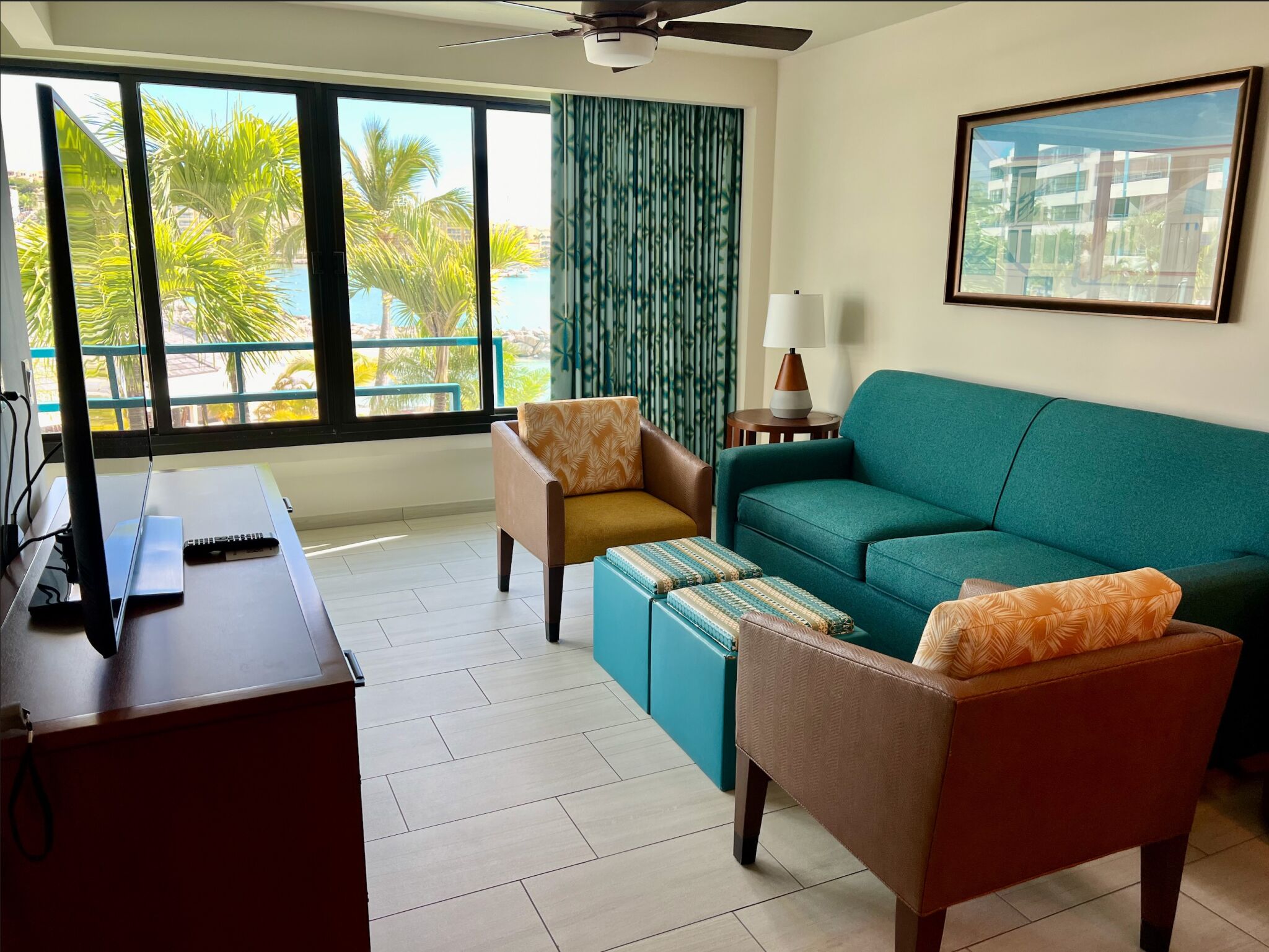 Accommodations at Royal Palm range from spacious one- and two-bedroom suites to larger multi-room villas, each designed with comfort and flexibility in mind. Suites include fully equipped kitchens, separate living and dining areas, private balconies or patios, in-suite washer/dryer, and modern amenities such as flat-screen TVs and complimentary Wi-Fi. Stylish Caribbean-inspired décor and thoughtful layouts make these accommodations ideal for couples, families, or groups seeking a home-away-from-home experience on St. Maarten.