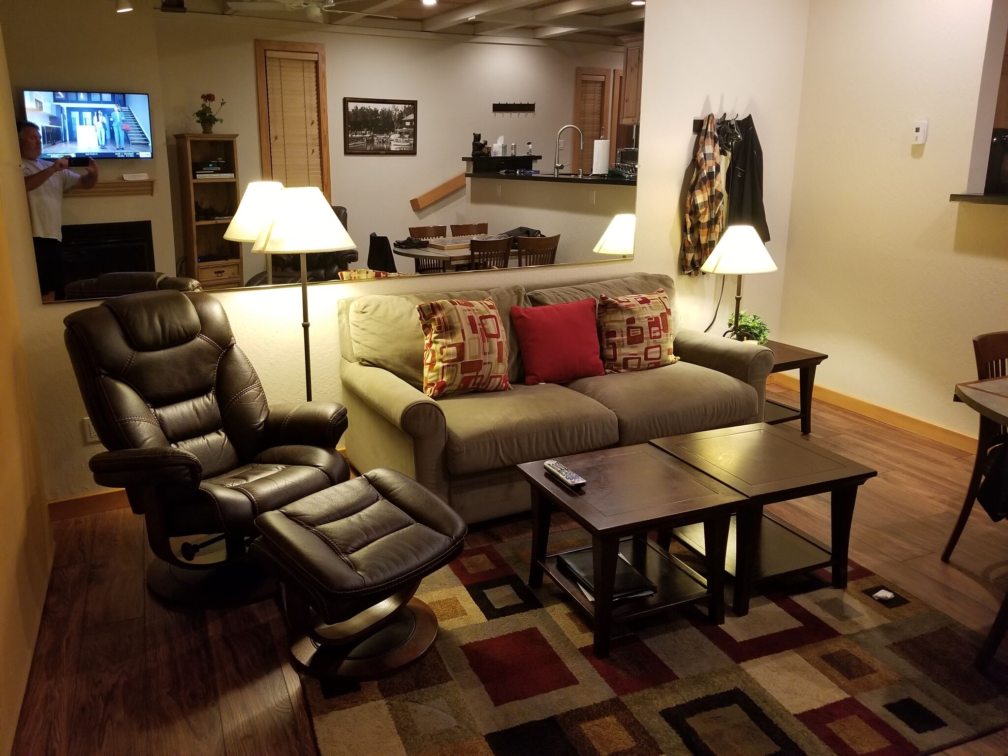 Brockway Springs Resort's suites range in size from one-bedroom, one-bath floor plans to spacious lakefront four-bedroom townhouses. Suites feature fireplaces, fully-equipped kitchens, Wi-Fi access, HBO and cable, DVD players, spacious living areas, in-room washer and dryer, lofts in some units, and furnished decks overlooking the lakefront.
