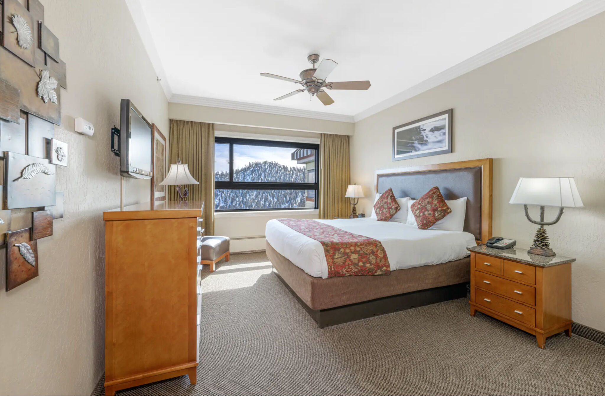 One- and two-bedroom condominium suites feature a fully equipped kitchen, spacious living area with queen sleeper sofa, separate dining area, gas fireplace, king or queen bed in each bedroom, three TVs, two VCR/DVD players, and daily maid service. Junior suites feature a king or queen bed, small sitting area, queen sleeper sofa, TV with VCR/DVD player, daily maid service, wet bar, mini refrigerator, microwave, and coffee maker. Deluxe hotel rooms feature a king or queen bed, mini refrigerator, coffee maker, microwave oven, small sitting area, and TV with VCR/DVD player.