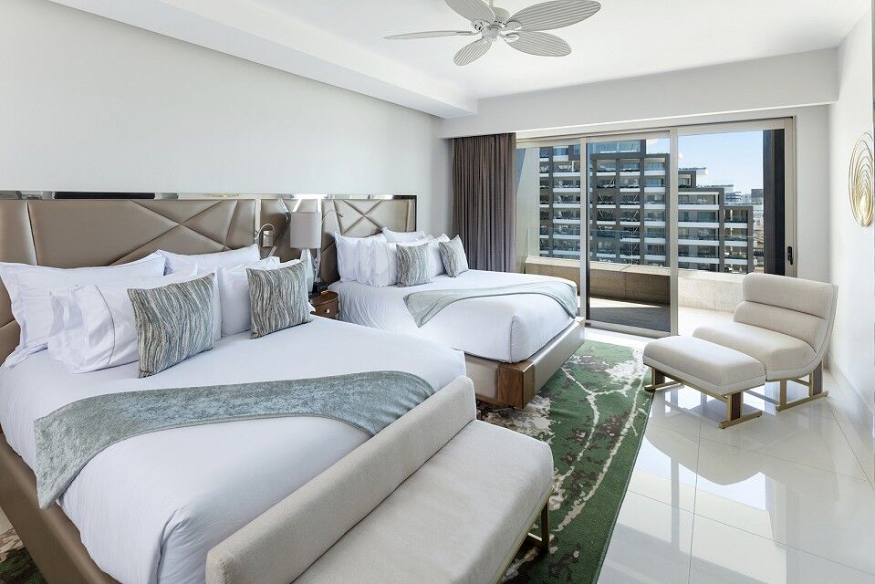Garza Blanca Resort & Spa Los Cabos offers a variety of studio, one-bedroom, two- bedroom and three-bedroom suites and residences capable of sleeping up to three, four, six or eight guests, respectively. Studio units have one king bed or two queen beds, and one bathroom. One-bedroom units come with one king and one sofa bed, as well as two bathrooms. Two-bedrooms offer more space, with one king bed, two queen beds, one sofa bed and three bathrooms. Three-bedroom residences are the roomiest, with enough space to accommodate up to eight guests. In addition, most units offer stunning ocean views and furnished balconies from which to enjoy the ocean air and splendor.