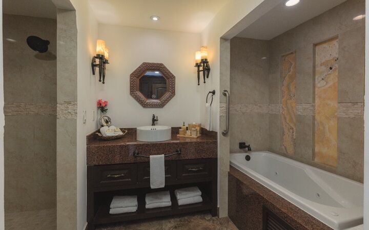 The resort is built on a cliff overlooking the Sea of Cortez with breathtaking views of the famous Land’s End arch to the right, and the San Jose coastline to the left, and during the winter, California grey whales as they frolic in the warm waters with newborn calves.