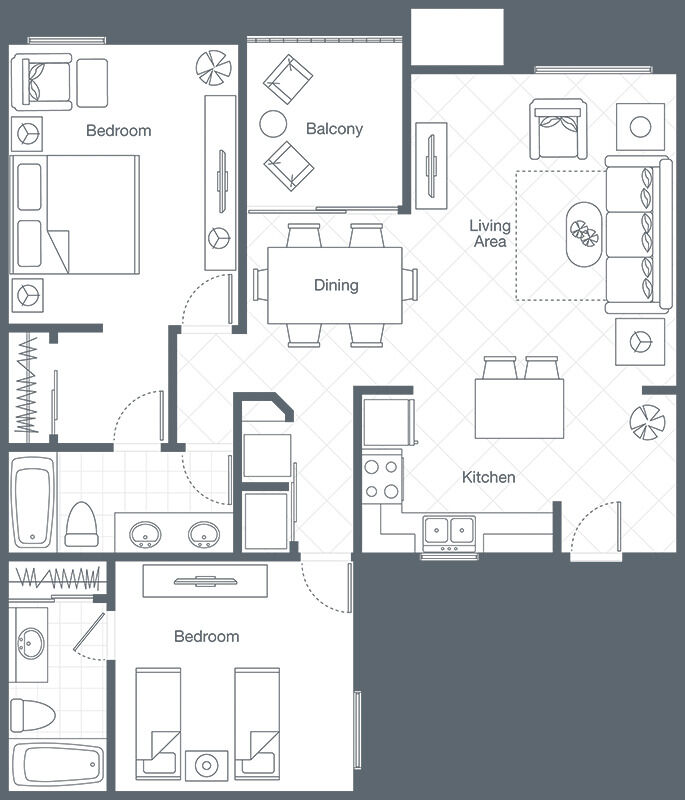 Ultra-spacious and extra-luxe accommodations define your stay at Sheraton Vistana. Offered in several different layouts and configurations, selecting the perfect fit for you group is easy - a flexible two-bedroom lock-off, and one-bedroom and two-bedroom units are available. Whichever you opt for, your timeshare villa will be fully equipped with a full kitchen, in-villa washer/dryer, whirlpool tub in master bedroom and private patio or balcony from which to enjoy the fresh air.