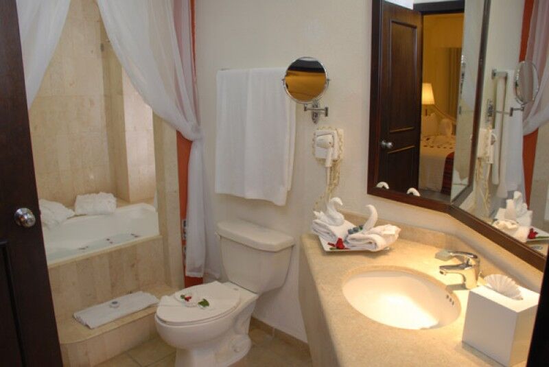 The suites at Krystal Grand Nuevo Vallarta boast sleek decor and a striking white and red color scheme. Rooms offer ocean views and balconies, and come outfitted with luxury bathrooms, kitchenette, dining area, living area, complimentary Wi-Fi, ultra-plush bedding and linens, bathrobes and flat-screen TV's.