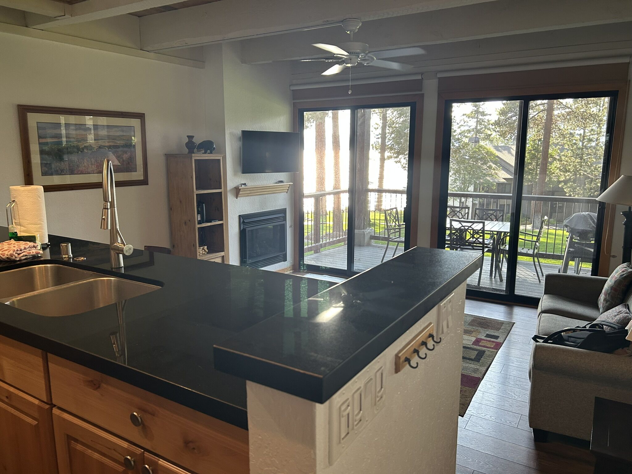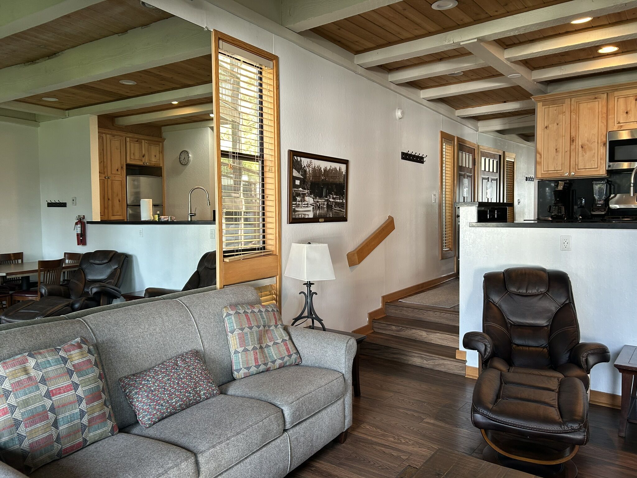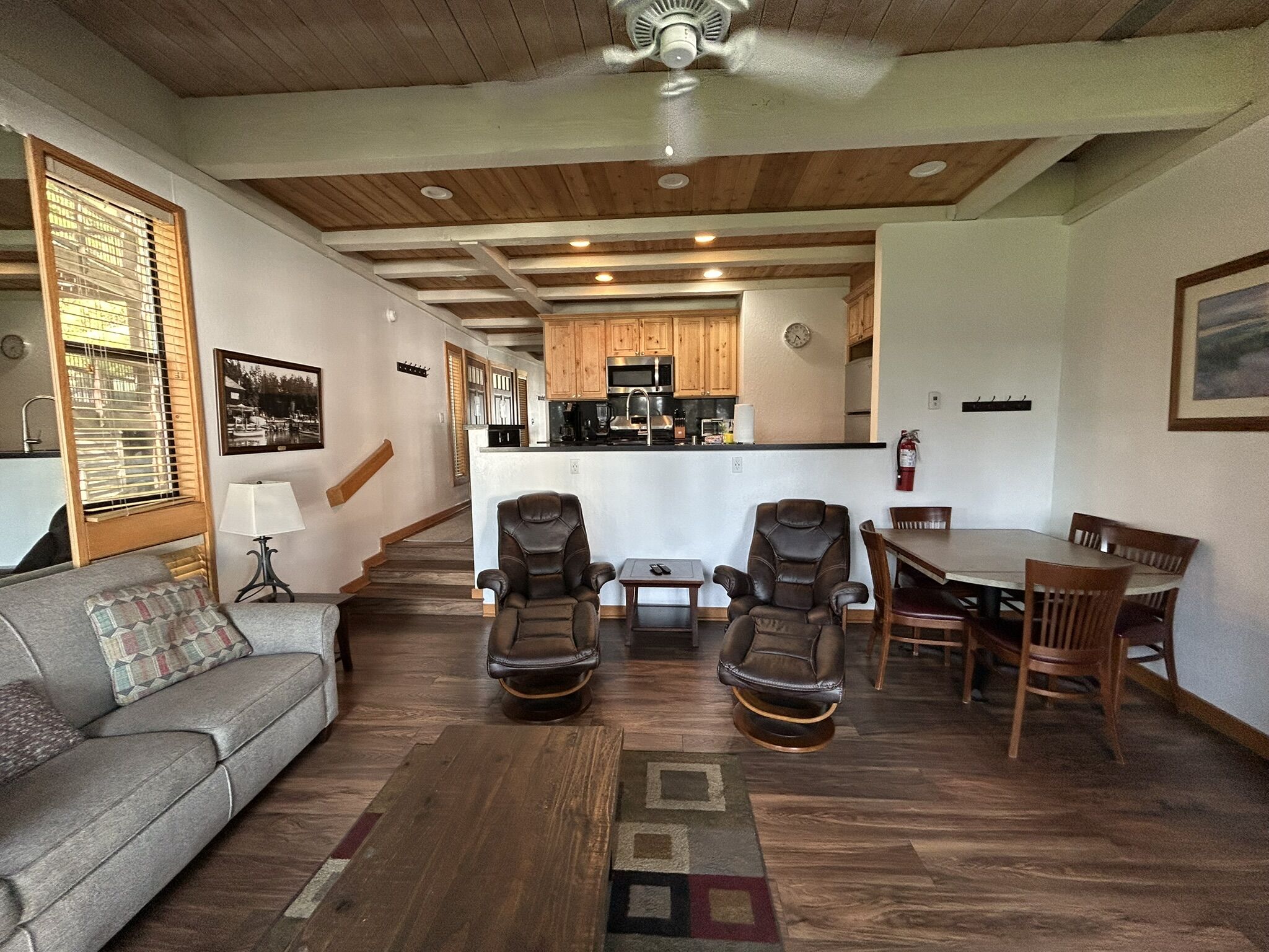 Brockway Springs Resort's suites range in size from one-bedroom, one-bath floor plans to spacious lakefront four-bedroom townhouses. Suites feature fireplaces, fully-equipped kitchens, Wi-Fi access, HBO and cable, DVD players, spacious living areas, in-room washer and dryer, lofts in some units, and furnished decks overlooking the lakefront.