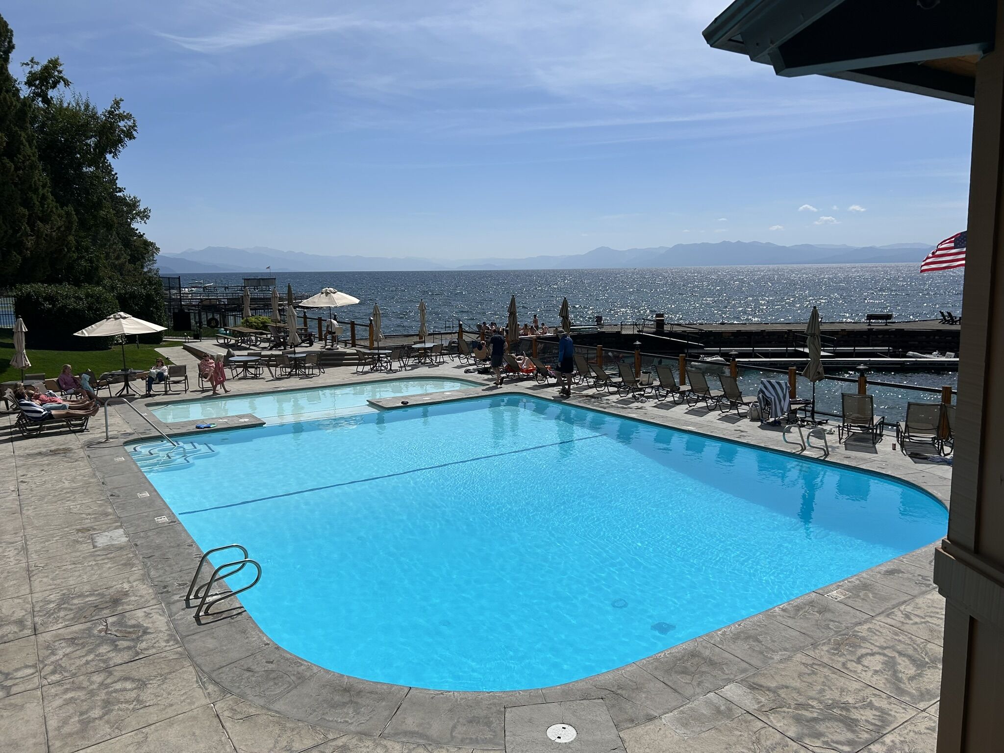 Sheltered in a swath of towering pine trees on Lake Tahoe's north shore is Brockway Springs Resort. Guests are invited to take a dip in the year-round swimming pool heated directly by natural hot springs while the kids frolic in the children's wading pool. Also available are two tennis courts, fishing and boating pier, and a clubhouse with saunas and a fitness room. A beautiful half-mile of wooded and level shoreline is perfect for leisurely evening strolls.