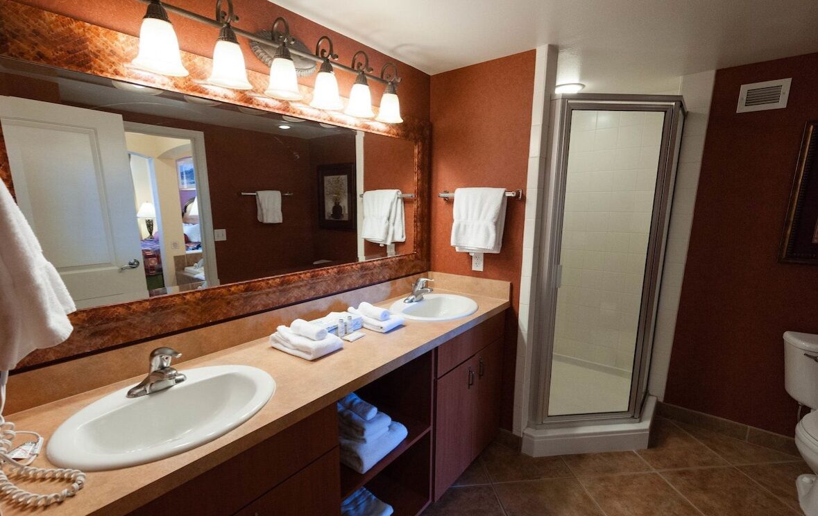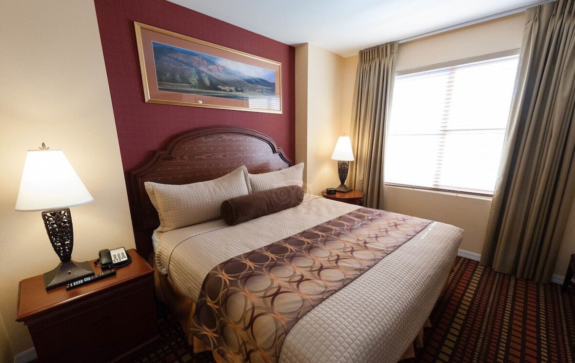 The spacious one- and two-bedroom suites are designed with comfort in mind, featuring fully equipped kitchens, washer/dryer, living and dining areas, and whirlpool tubs. Private bedrooms, sofa beds, and flat-screen TVs make the units perfect for families or groups, while large windows provide views of the surrounding desert landscape. With plenty of room to spread out and all the conveniences of home, The Grandview at Las Vegas makes an excellent base for extended stays.