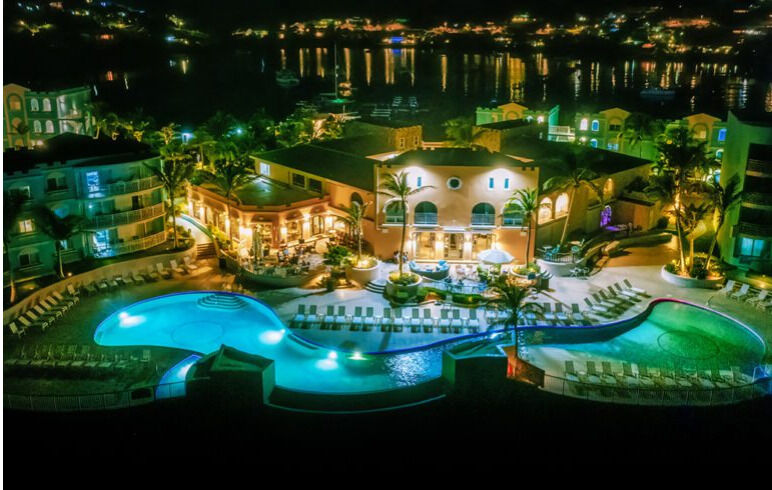 Nestled among the palms is one of the most private and secluded hideaways on the island of Sint Maarten. Guests arriving at this quaint inn are welcomed by Moorish arches and natural stone towers with romantic private balconies. Each unit has a spectacular view of the ocean, marina, or garden. The resort is on Dawn Beach, a pristine, mile-long beach which offers snorkeling and scuba diving.