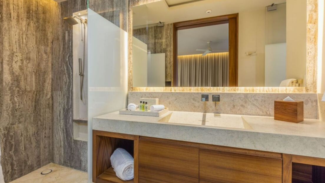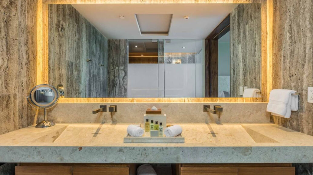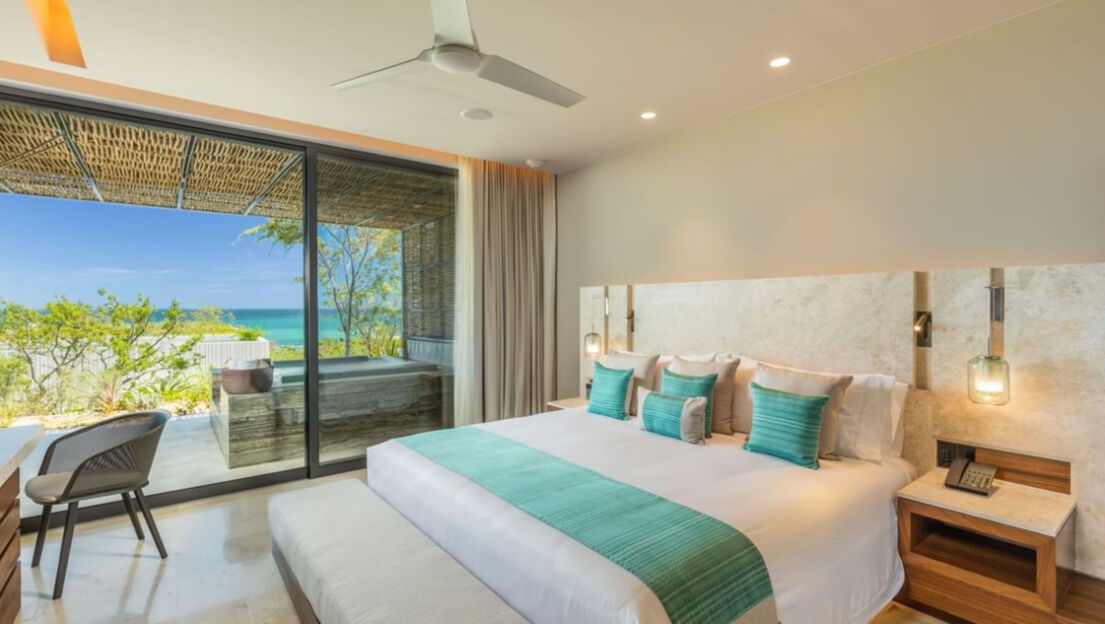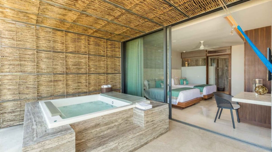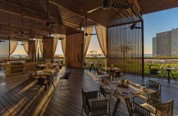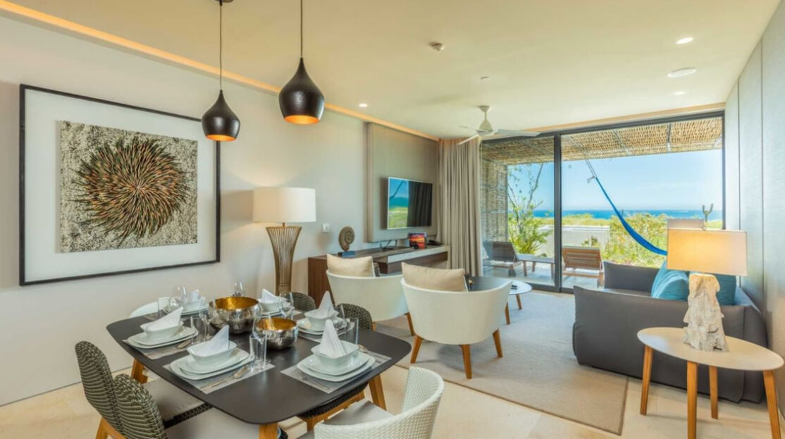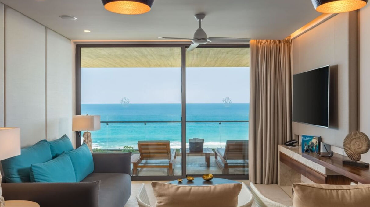 The Club at Solaz boasts 128 guest rooms and suites, all of which overlook the ocean. Whether your opt for a studio room or the prestigious penthouse Presidential Suite, count on upscale interiors that draw from the region's natural beauty with earth tones and wood and granite trimming. Many larger suites offer outdoor terraces feature private pools, whirlpools and fire pits, while three-bedroom residences are distinguished by stunning wraparound terraces.