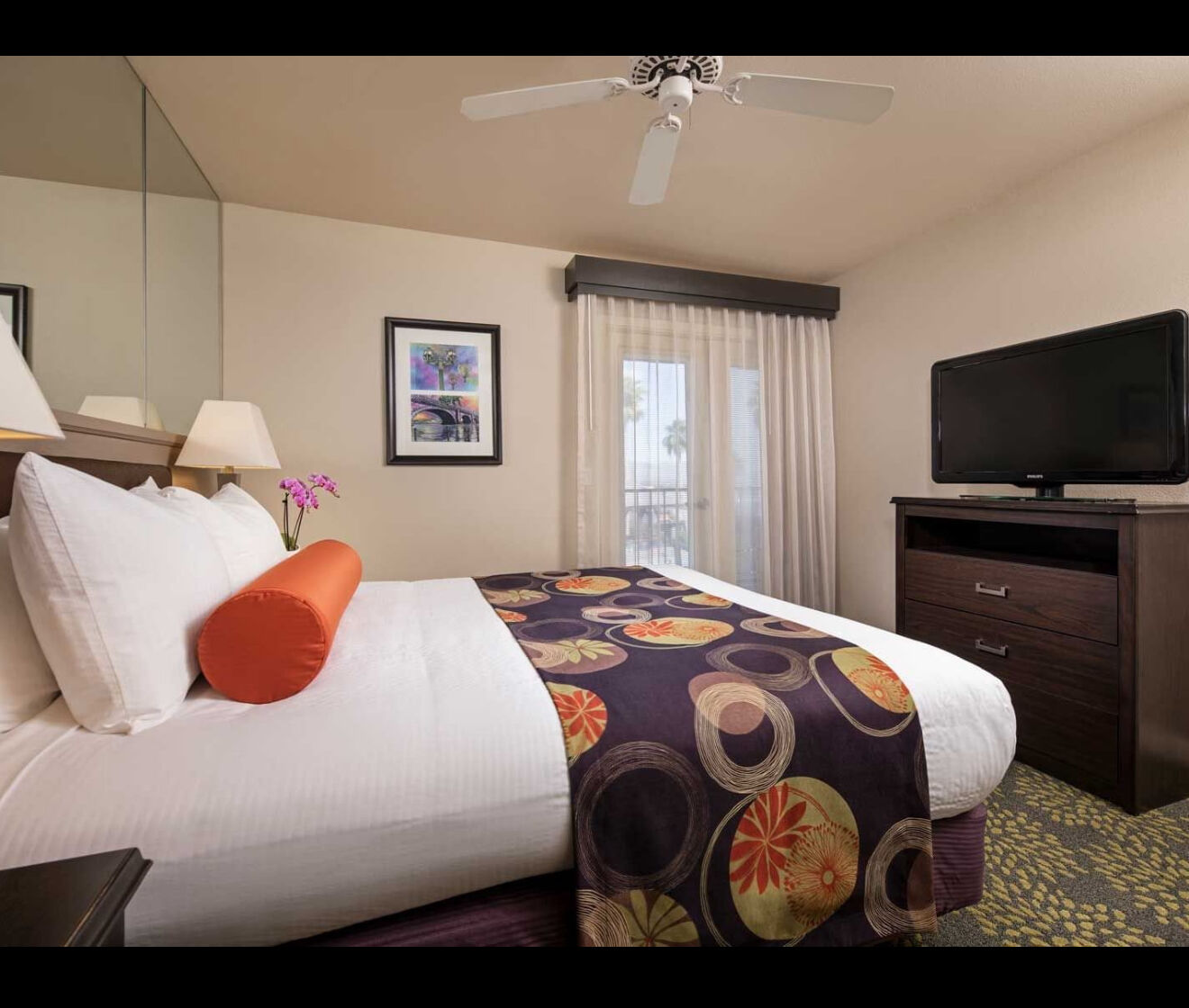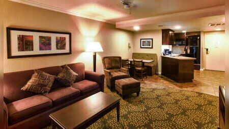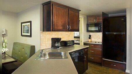 The resort is composed of 122 studio, one and two-bedroom units. Studios include a space features a queen-size pull-down bed, a fully equipped kitchenette, a full bathroom, a sofa, a 37” flat-screen TV and complimentary Wi-Fi access. One and two-bedroom villas feature one or two furnished bedrooms (respectively), one full bathroom, one three-quarter bathroom, a fully equipped kitchenette, two flat-screen TVs, a DVD player, complimentary Wi-Fi access and a spiral staircase to a rooftop patio in select two-bedroom units.
