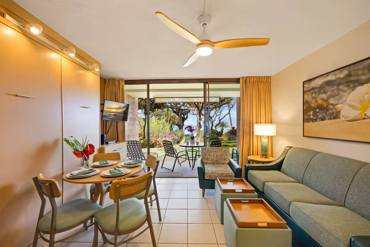 The Kuleana Club offers quiet, spacious one-bedroom timeshare suites set in a quiet tropical landscape. These units are capable of sleeping up to four, and offer either ocean or garden views. Each suite features a queen bed, sleeper sofa in the living area, fully-equipped kitchen, and a private lanai that provides the perfect place for a morning cup of coffee as the sun rises.