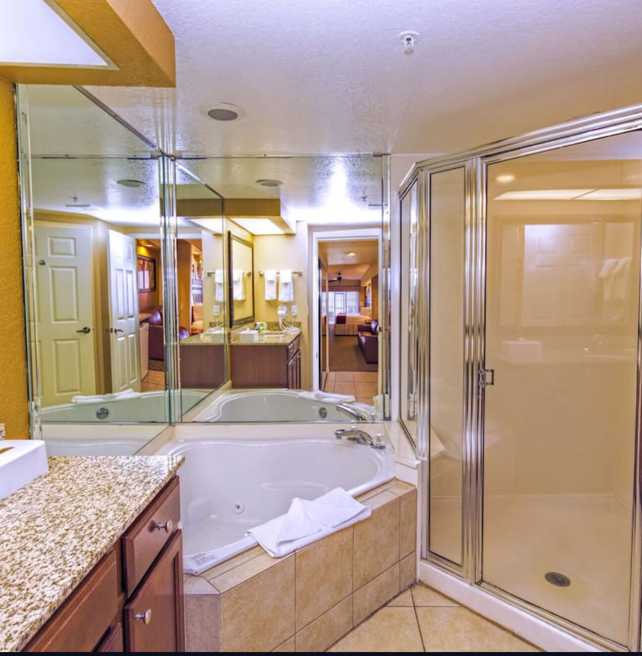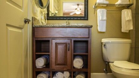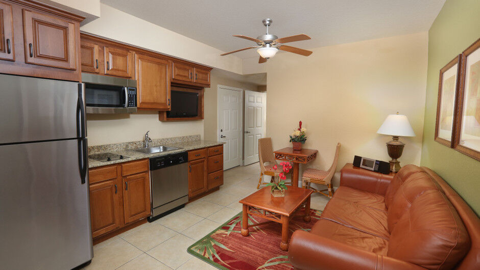 Westgate Lakes Resort & Spa offers roomy studio villa units and spacious one-bedroom, two-bedroom, three-bedroom, four-bedroom, or five-bedroom villas that are capable of sleeping up to eighteen! All timeshare villas include a plasma-screen TV with premium channels in the living area and master bedroom, private terrace and in-villa washer/dryer. Some villas feature fully equipped kitchens, whirlpools bathtubs and walk-in showers.