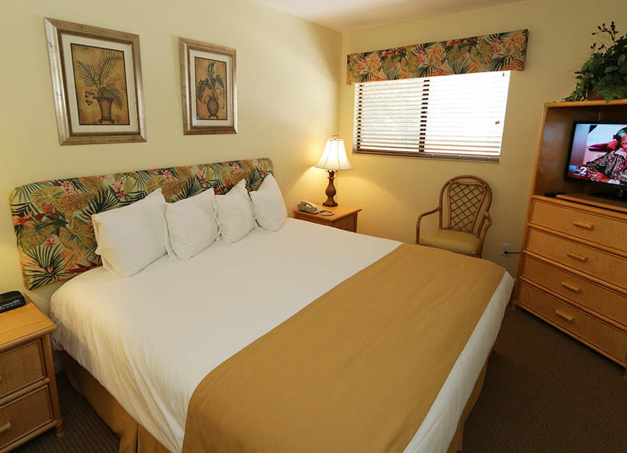 Ultra-spacious, two-bedroom suites are capable of sleeping up to six individuals, making them perfect options for medium groups such as families. Suites come with a fully-equipped kitchen, dining area, two full bathrooms, fully screened and furnished balcony or porch, spacious living area and cable television. Warm tropical colors and prints not only add an inviting ambiance to your suite, but set the mood for your vacation to come from the moment you walk in the door!