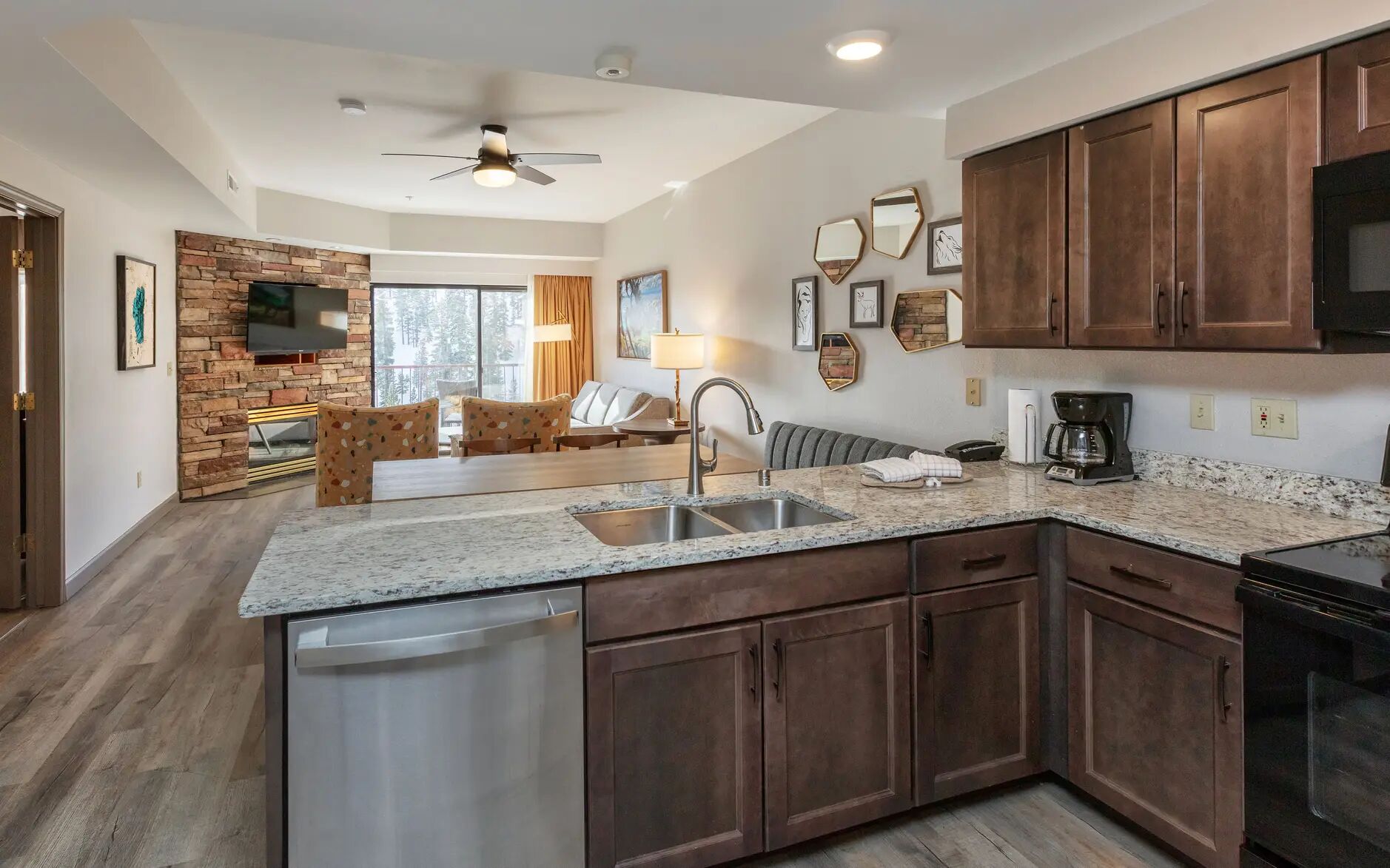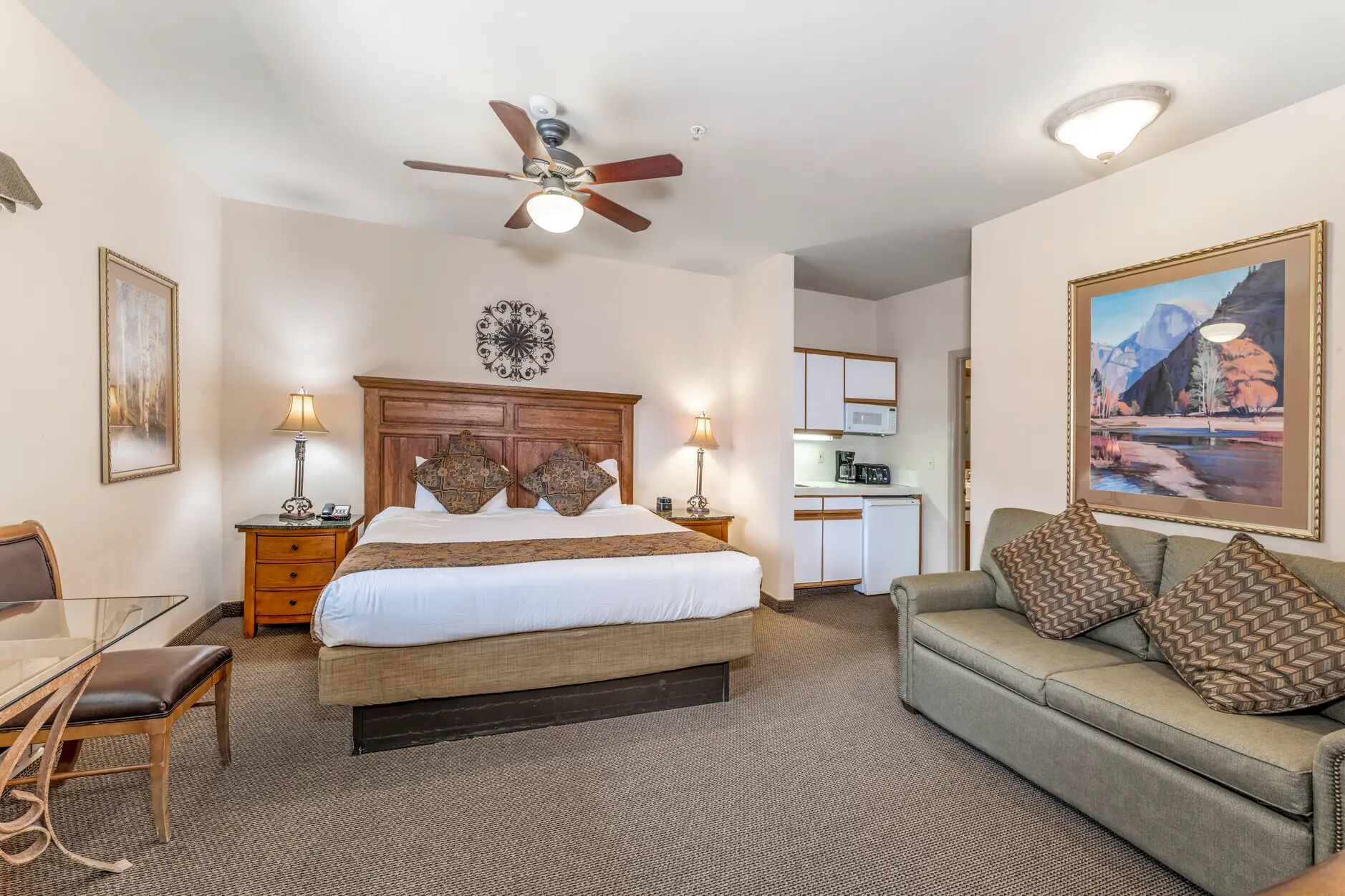 One- and two-bedroom condominium suites feature a fully equipped kitchen, spacious living area with queen sleeper sofa, separate dining area, gas fireplace, king or queen bed in each bedroom, three TVs, two VCR/DVD players, and daily maid service. Junior suites feature a king or queen bed, small sitting area, queen sleeper sofa, TV with VCR/DVD player, daily maid service, wet bar, mini refrigerator, microwave, and coffee maker. Deluxe hotel rooms feature a king or queen bed, mini refrigerator, coffee maker, microwave oven, small sitting area, and TV with VCR/DVD player.