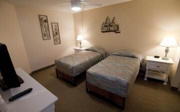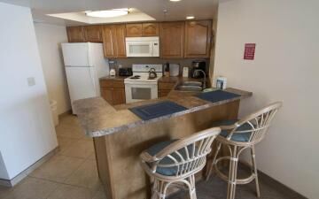 At Redington Ambassador, two-bedroom, two-bathroom and three-bedroom, three-bathroom vacation suites are available. Each comes complete with a fully equipped kitchen, and select units are equipped with washer and dryer. Suites feature master bedrooms with king-size bed, a second bedroom with two oversize twin beds and a queen-size sleeper sofa in the living room. Three-bedroom units also contain a queen-size, pull-down Murphy bed in the third bedroom.