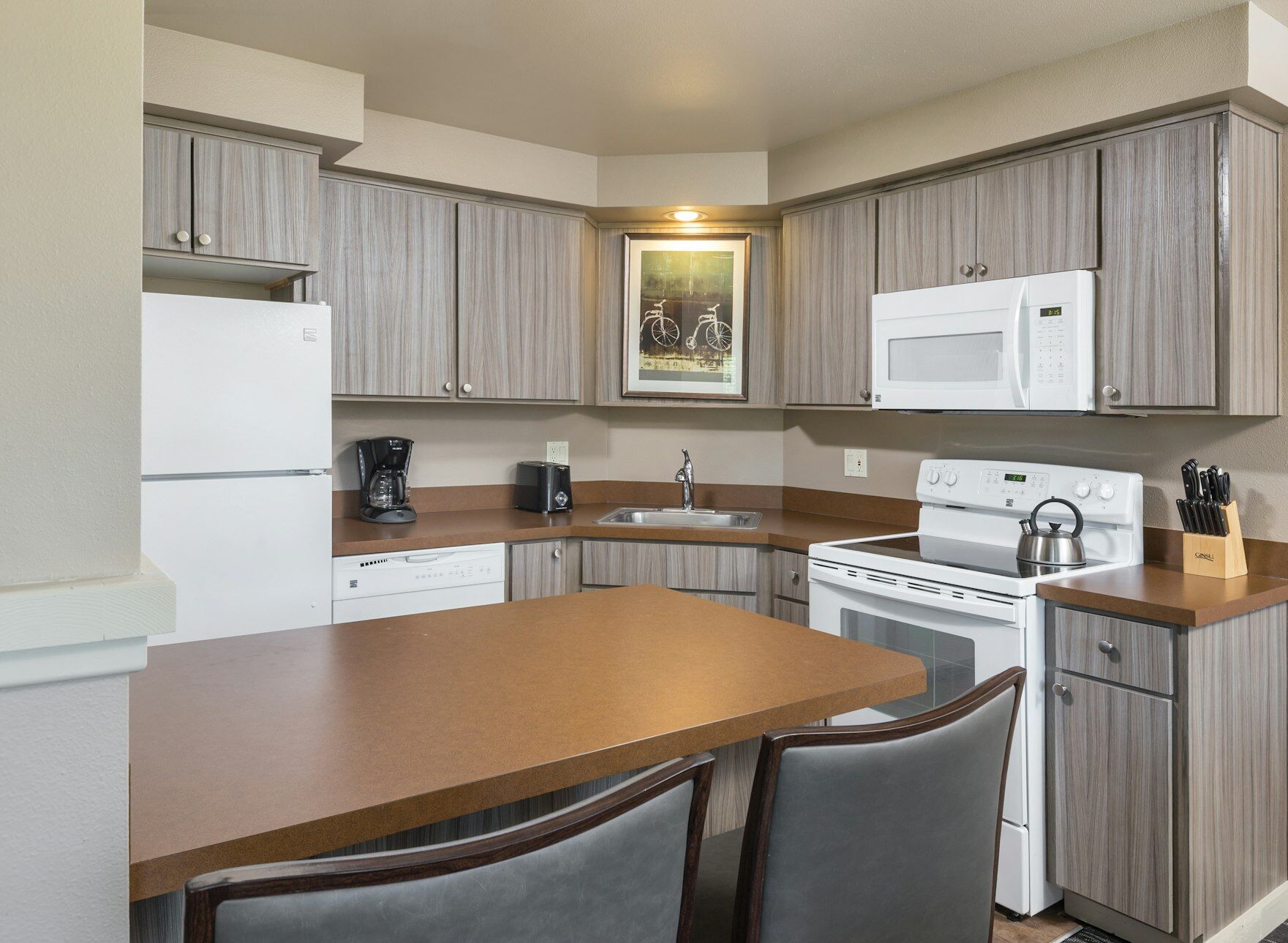 Accommodations at WorldMark Eagle Crest include one- and two-bedroom suites designed for comfort and flexibility. Each unit features a fully equipped kitchen or kitchenette, separate living and dining areas, private bedrooms, washer and dryer in most suites, and modern conveniences such as flat-screen TVs and Wi-Fi. Many units also include fireplaces and private balconies or patios, offering cozy spaces to unwind while taking in views of the surrounding high desert or golf course landscapes.
