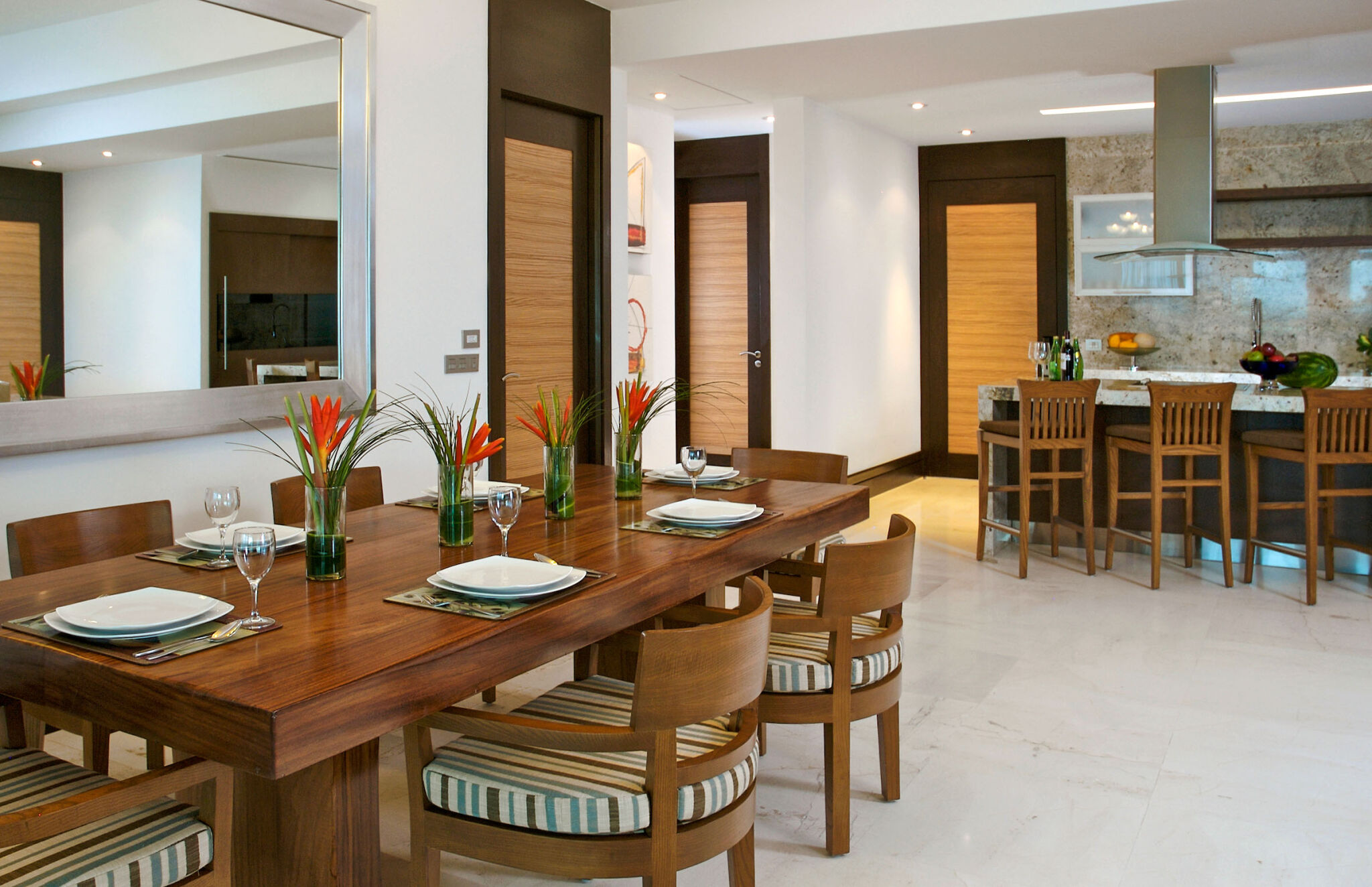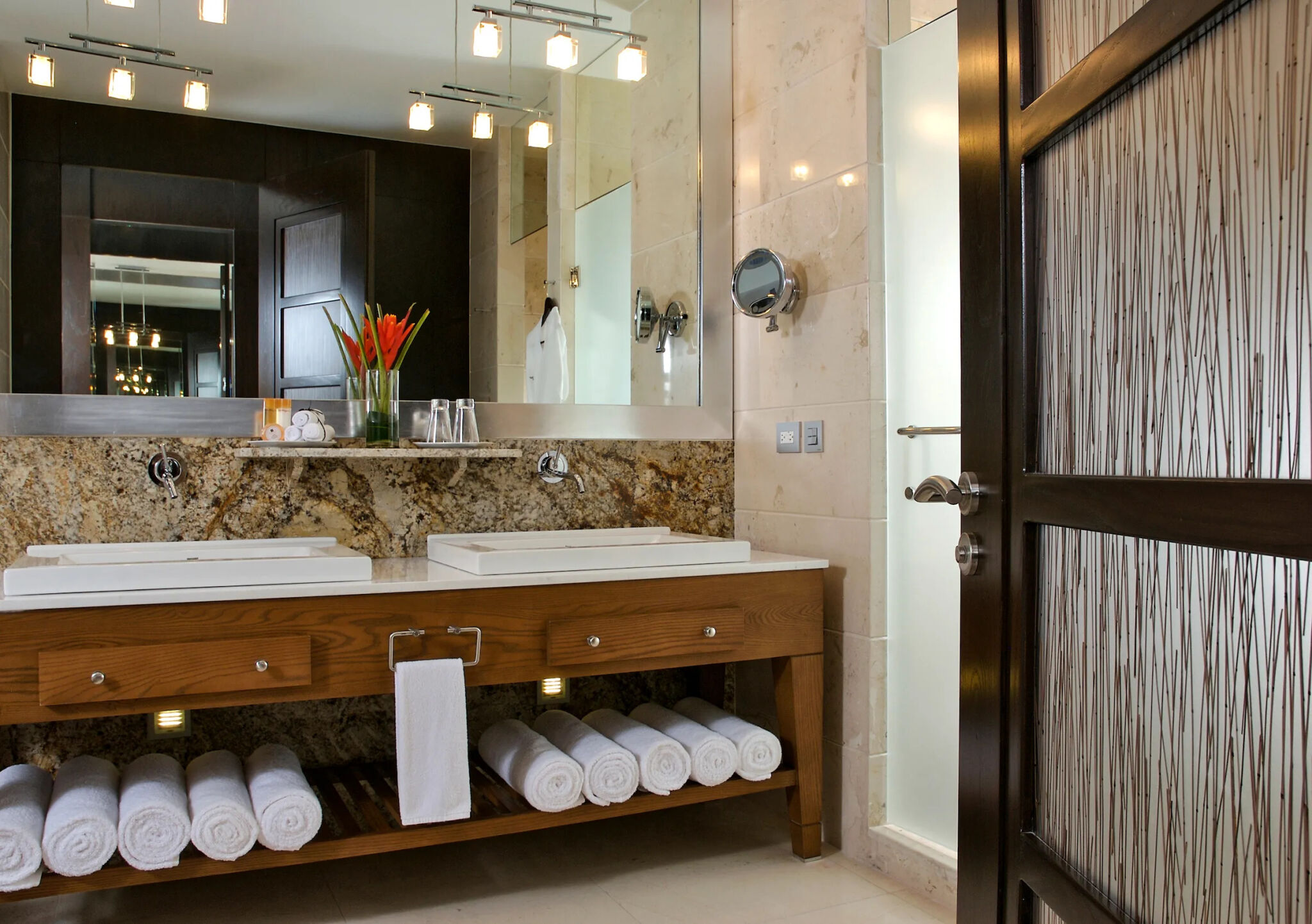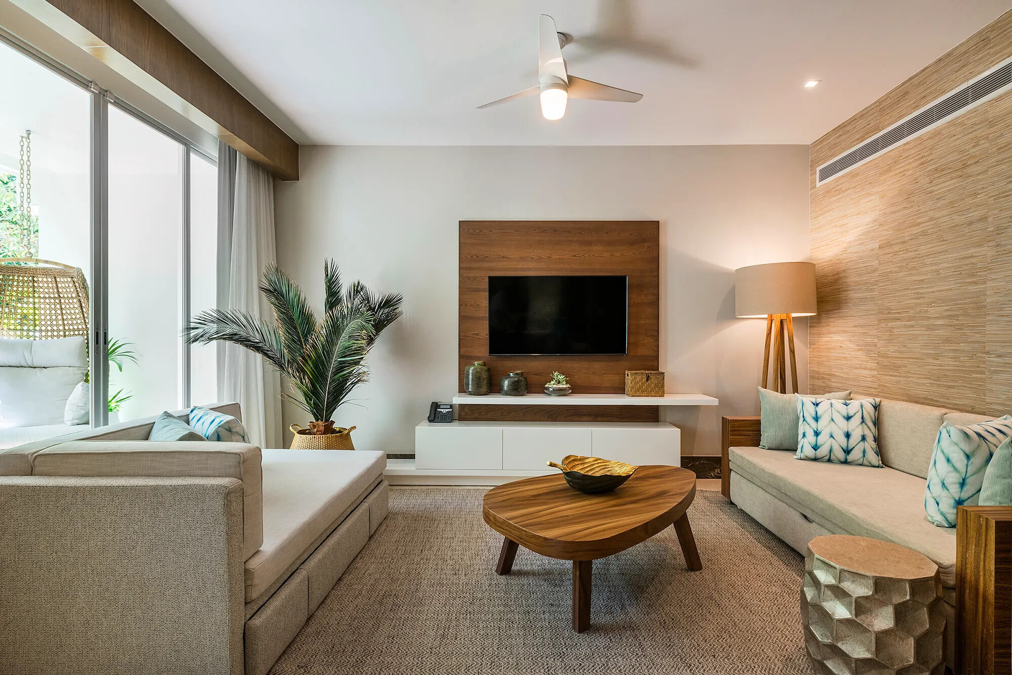 The accommodations at Grand Luxxe are spacious and designed for high comfort, offering villa-style suites across several layouts. Many units include gourmet kitchens, dining and living areas, private terraces with plunge pools, multiple bathrooms with marble finishes and Jacuzzi tubs, and sweeping views of jungle or sea. The décor blends natural materials, neutral tones, and elegant modern finishes to create a serene retreat. Recent additions such as the Jungle Suites add secluded floor plans and elevated design touches for guests seeking a more intimate feel.