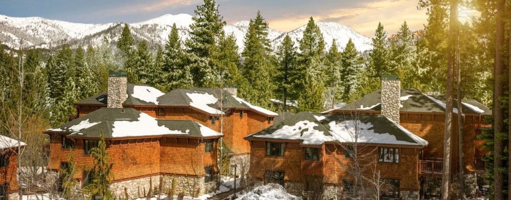 The resort features 60 two-bedroom, two-bathroom vacation rental units nestled among the pines of Lake Tahoe's north shore. Luxurious accommodations include a king bed, master bath, and spa tub in the master suite, two double beds in the guest room, fully equipped kitchen, sleeper sofa and gas fireplace in the living area, and a private balcony.
