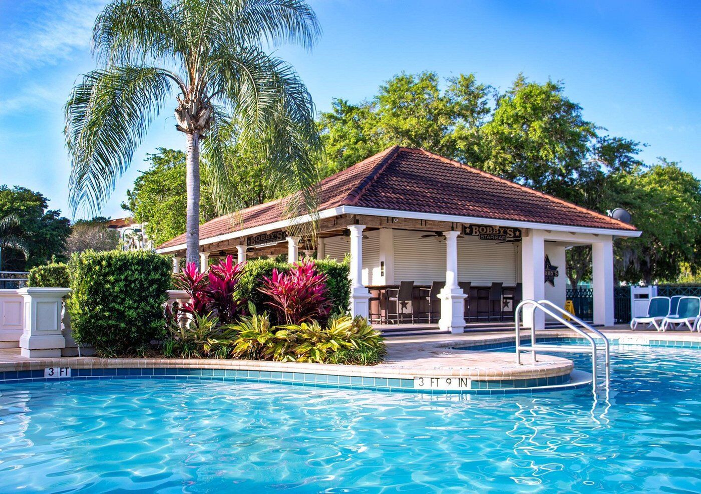 With a stylish Mediterranean-styled exterior and plenty of luxurious amenities, Star Island Resort is your perfect Orlando getaway! Indulge in a day of pampering at the world-class Celebrity Spa or enjoy more active pursuits with onsite recreational areas, including a golf driving range and putting green, water sports on Lake Cecile, two swimming pools, bicycles and bike paths, tennis, basketball and volleyball courts and a fitness center. For a more relaxing experience, enjoy a drink at the pool bar or a stroll down the lakefront boardwalk.