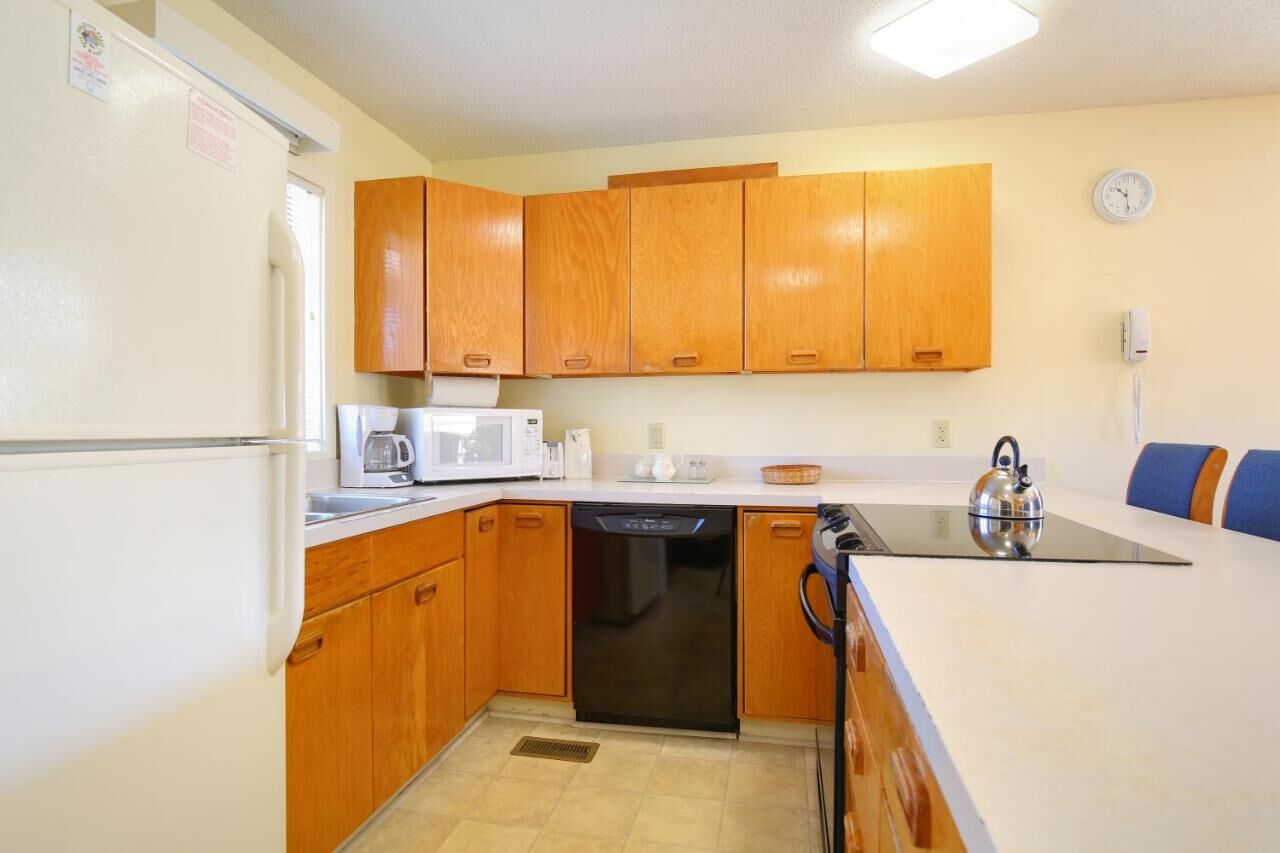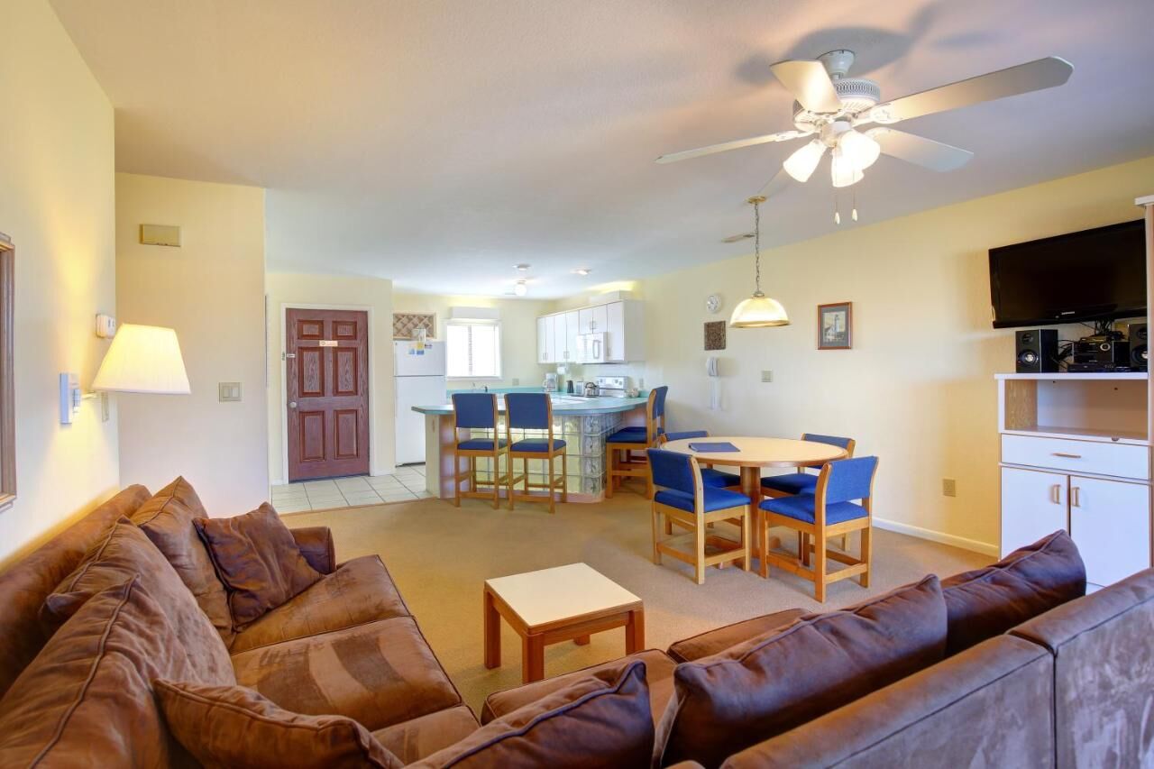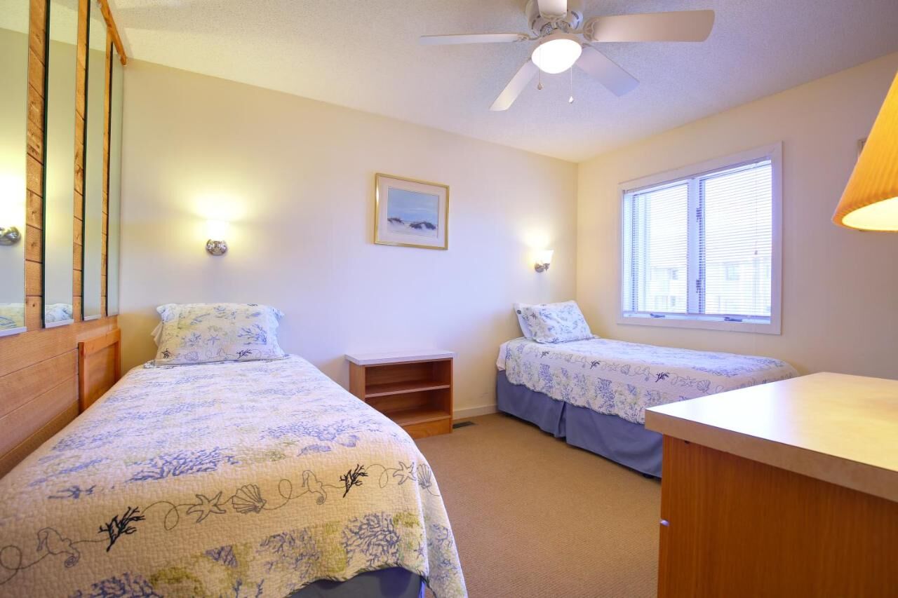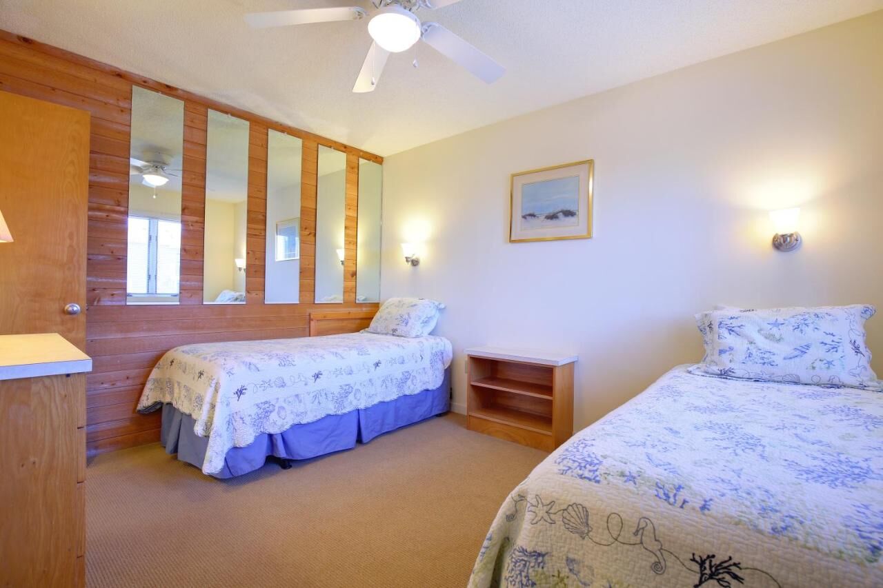 Two-bedroom units are spacious with balconies to enjoy the southern sun, full kitchens including ovens and dishwashers, two full bathrooms, queen bed in the master bedroom and two twins in the second bedroom. The living room has sectional sofas to sprawl out and relax on, and murphy beds which disappear easily during the day.