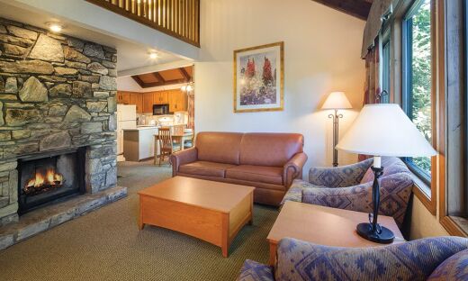 Accommodations at Fairfield Mountains include one- and two-bedroom suites, each designed with comfort and convenience in mind. Units feature full kitchens, separate living and dining areas, washer/dryer, and private balconies or patios—many with views of the golf course, lake, or wooded hills. Fireplaces, whirlpool tubs, and cable TV offer added comfort, making these mountain retreats feel like a true home away from home.
