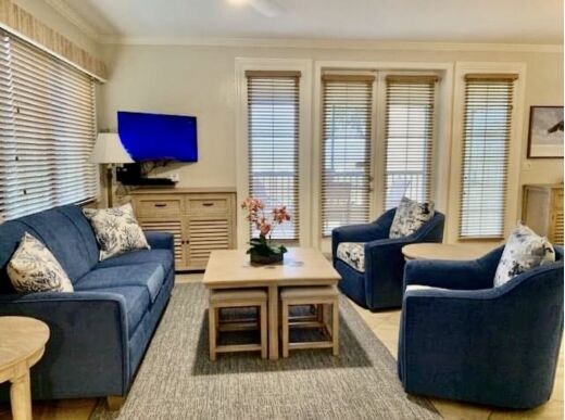 Eagle’s Nest’s seventy tower units and twenty-six villas offer beautifully-appointed one-bedroom and two-bedroom condos, each with two bathrooms, sleeper- sofa, screened-in balcony, fully-equipped kitchen, in-villa washer/dryer and cable/video/DVD player. Earthy, sandy tones accented by rattan furniture and wood trim truly makes your villa feel like your dream island retreat.