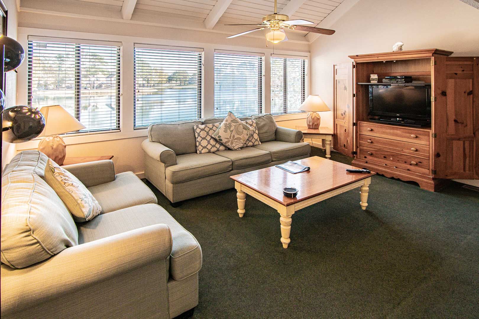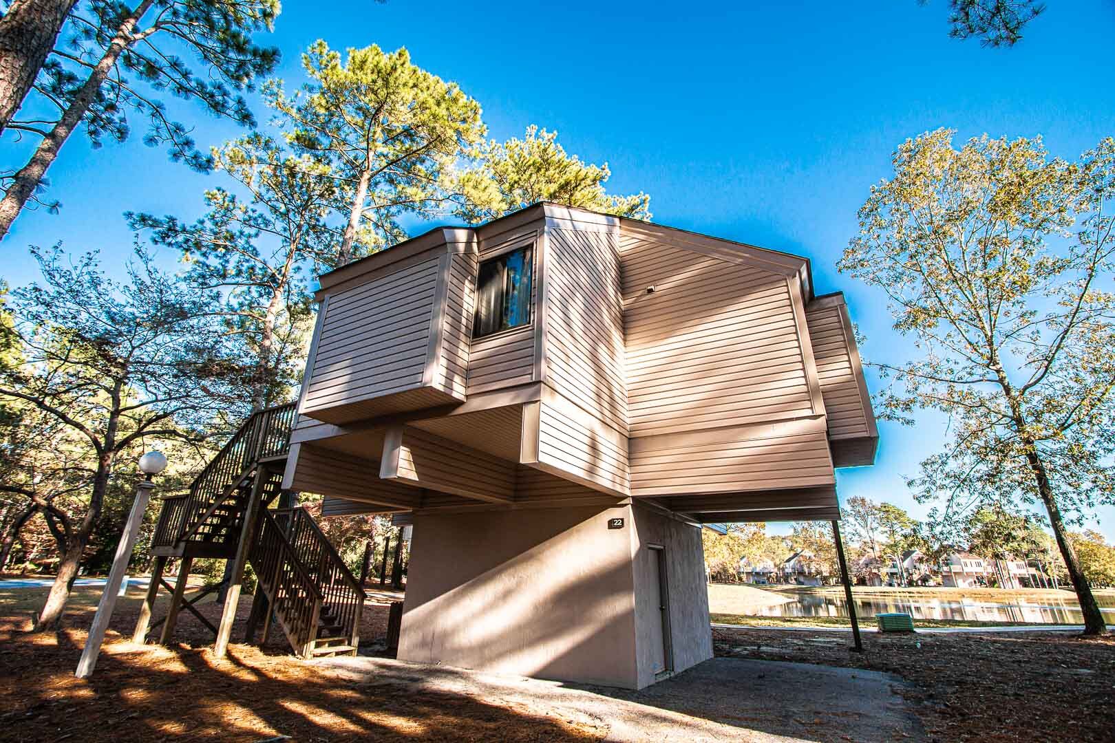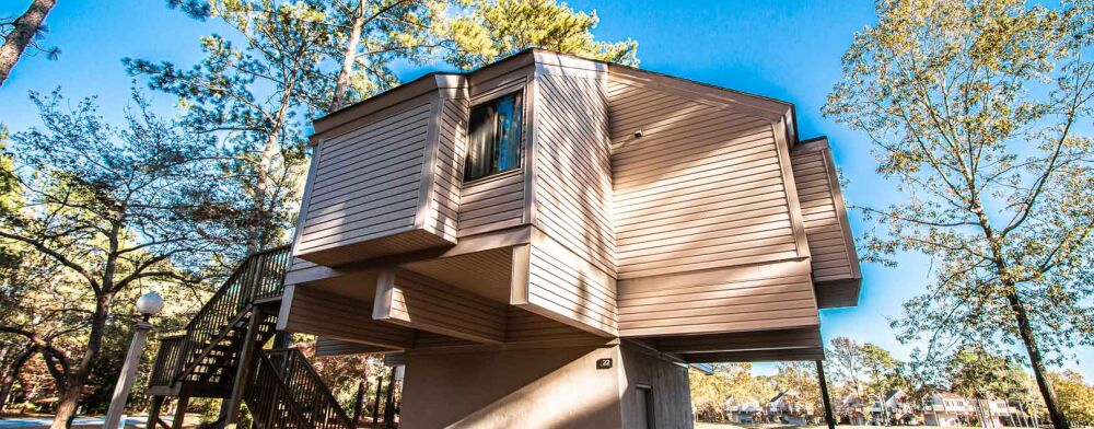 These two-bedroom pedestal-style townhouses come complete with a loft, fireplace, and fully- equipped kitchen. Located on the Neuse River, Waterwood Townhouses features multiple amenities for its guests. The resort offers two outdoor pools, 11 tennis courts (four are lighted), a recreation center with an indoor pool, a miniature golf course, two 18-hole golf courses, bicycle rental, and boat slips that can accommodate boats up to 60 feet in length.