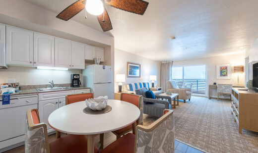 The accommodations of Southern California Beach Club blend designer-contemporary touches and decor with the bright, sunny attitude that defines the SoCal spirit. Studios sleep up to two individuals, one-bedroom villas sleep four and two-bedroom villas have room for six guests. All units feature a kitchenettes, cable TV, and a private patio or balcony.