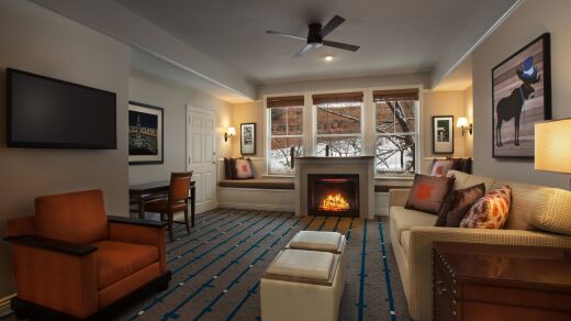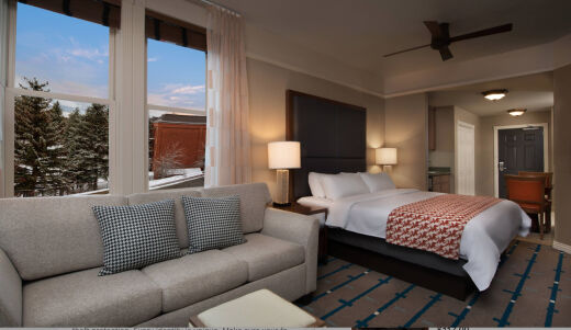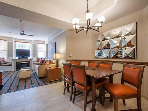 Spacious villa-style accommodations are designed with comfort and functionality in mind. One- and two-bedroom villas feature fully equipped kitchens, separate living and dining areas, gas fireplaces, in-villa washer and dryer, and private balconies. Thoughtful layouts and warm mountain décor make these accommodations ideal for families, couples, or groups looking for a home-like stay in Park City.