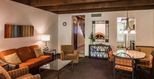 The two-story, two-bedroom villas at Arroyo Roble provide plenty of space for you to relax and unwind. A fully-equipped kitchen and designated dining area make cooking and enjoying family meals easier than ever. Unwind in the living room, where an entertainment center including a TV, DVD player and stereo system resides. Two fireplaces in the living area and master bedroom keep things cozy, and the whirlpool bathtub is ideal for indulging in some well-earned "you" time. Of course, don't forget to take in the gorgeous Sedona landscape from one of two private balconies!