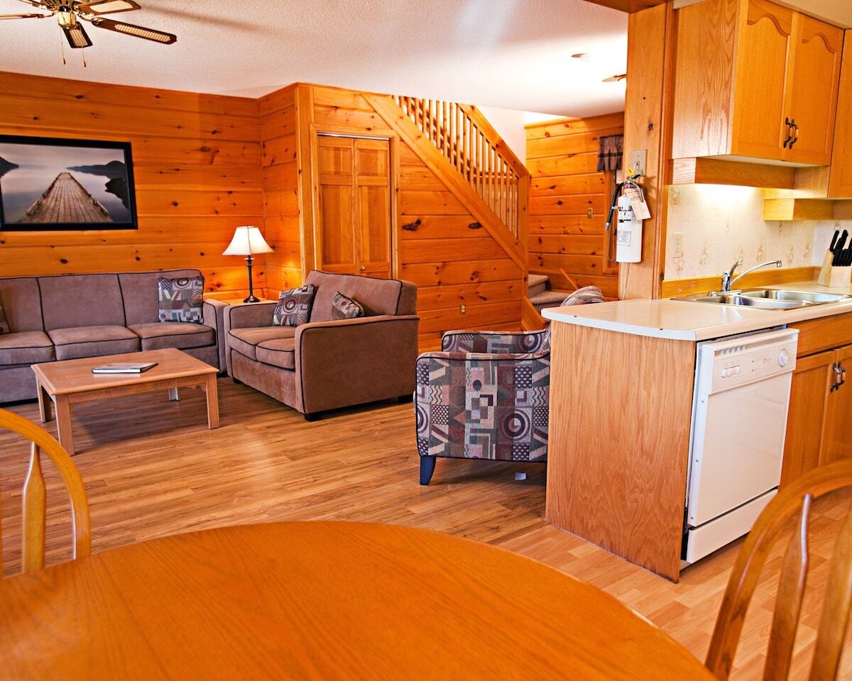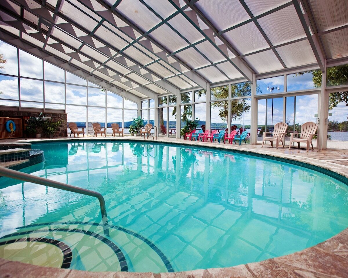 Calabogie Lodge Resort is situated on the shore of beautiful Calabogie Lake, only a 60 mile drive to the Capital of Canada. In summer, enjoy fun and sun on the sandy beach along with onsite activities, such as paddleboating, tennis, guided fishing tours, biking, hiking, kayaking, and canoeing. Mini Putt available nearby as well as guided white water rafting trips are available within one hours drive. Amenities include a sauna, indoor pool and whirlpool, outdoor whirlpool (summer only), children's play area, and barbecue grills. In winter, enjoy cross-country skiing, snowmobiling and ice fishing.