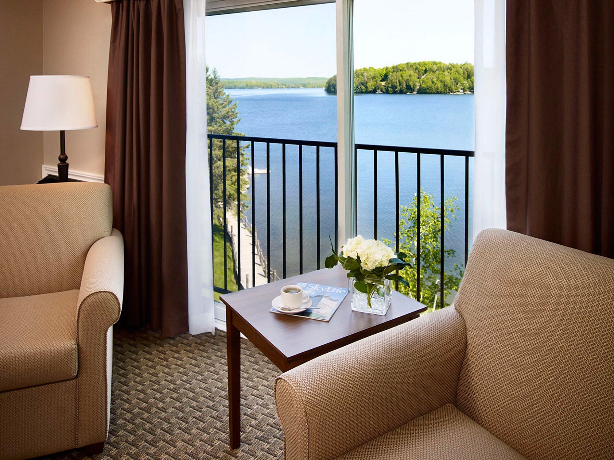 This resort is set in the woodlands on the banks of Peninsula Lake, north of Toronto, just minutes from the Hidden Valley ski slopes. Year-round on-site amenities include 2 golf courses, indoor and outdoor pools, tennis, squash, and racquetball courts, beach, sleigh rides and much more.
