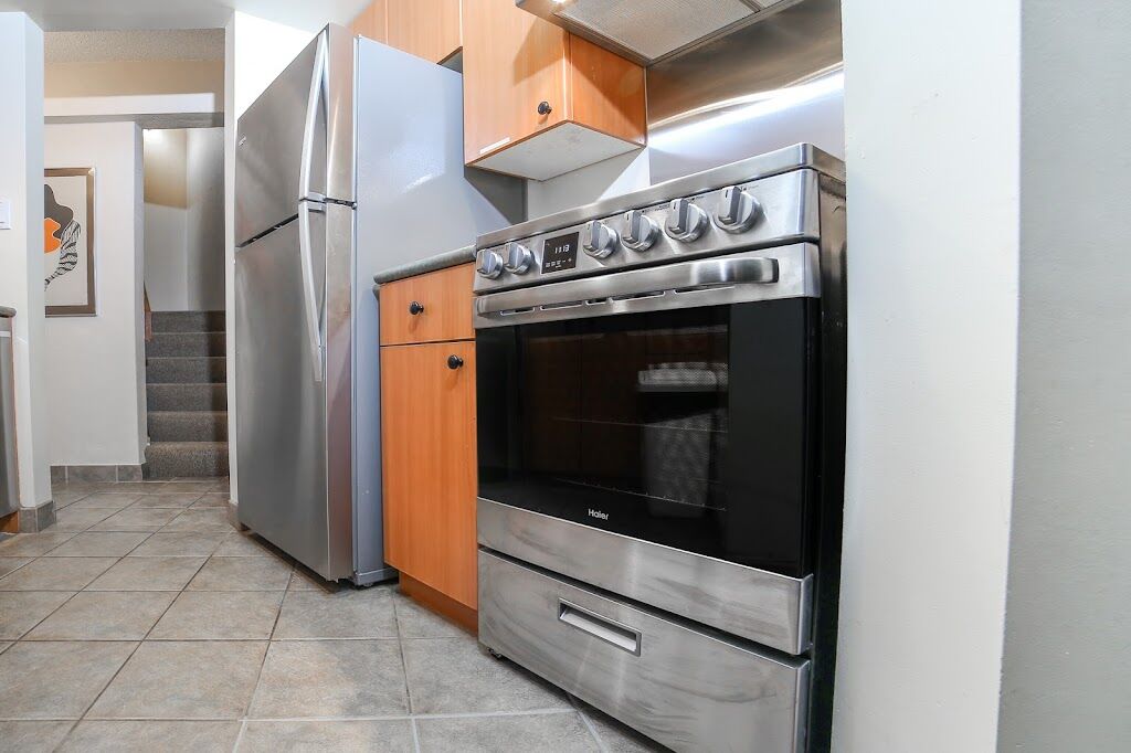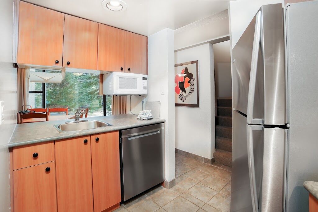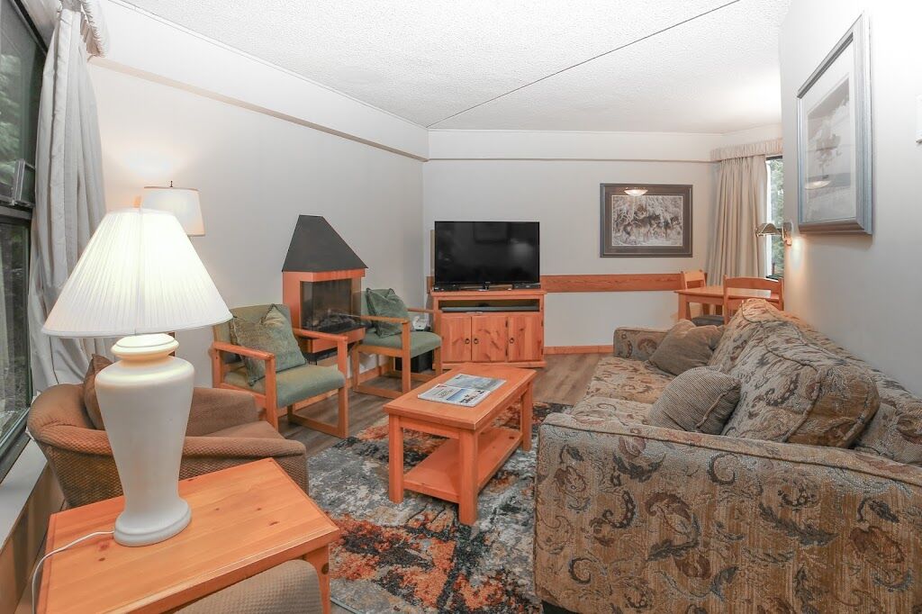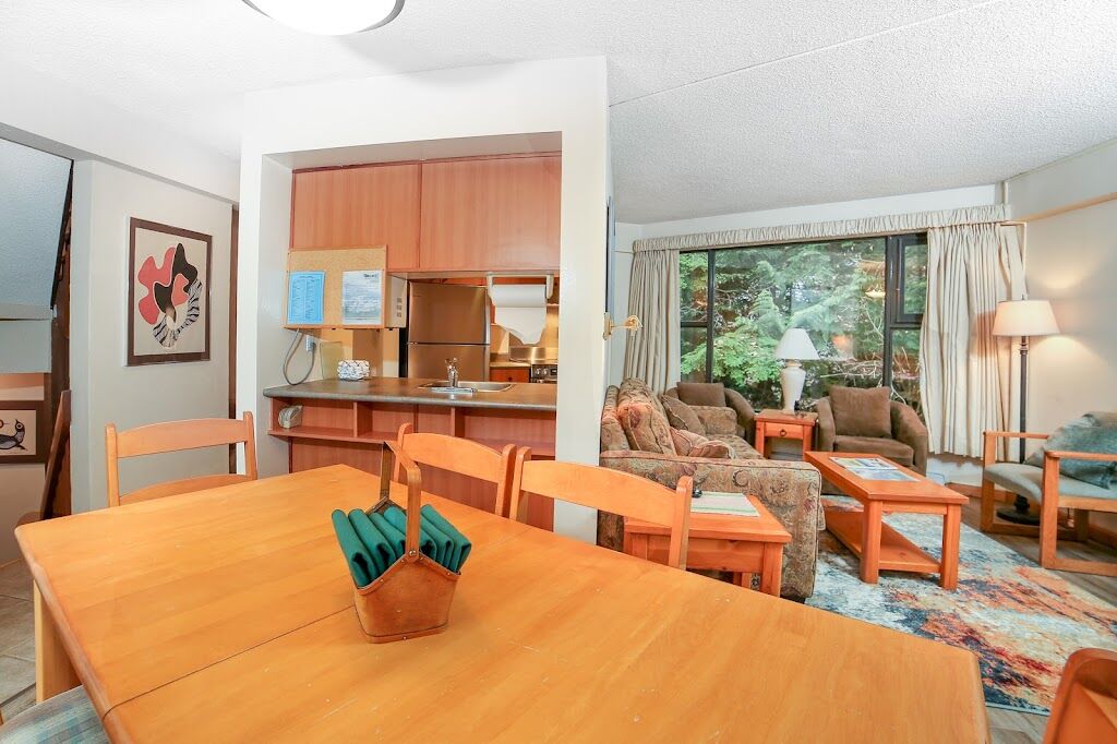 This complex of tri-level townhouses, located close to ski slopes in the Whistler Mountain resort area. Guests can go snowmobiling, ice-skating, and tennis, along with water sports on the six lakes in the vicinity. All townhouses have a private sauna.