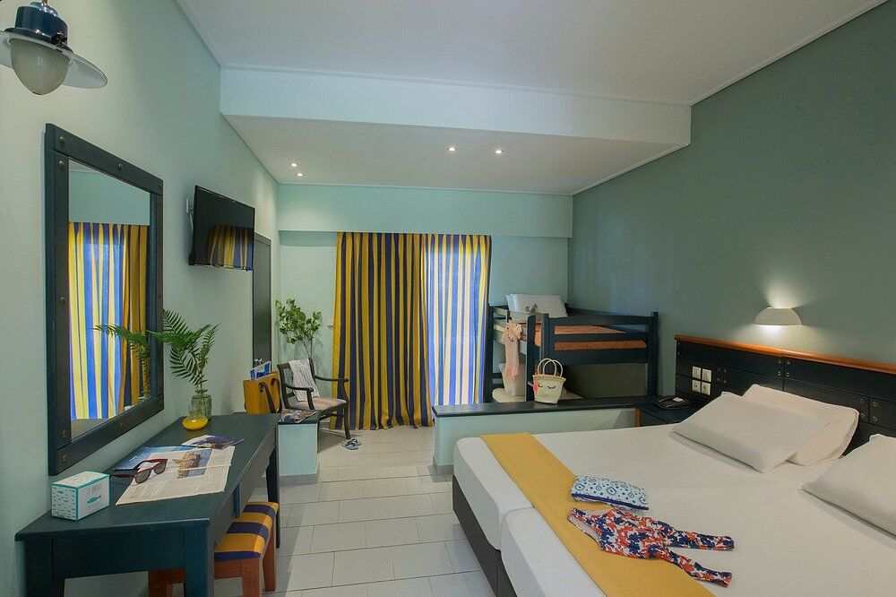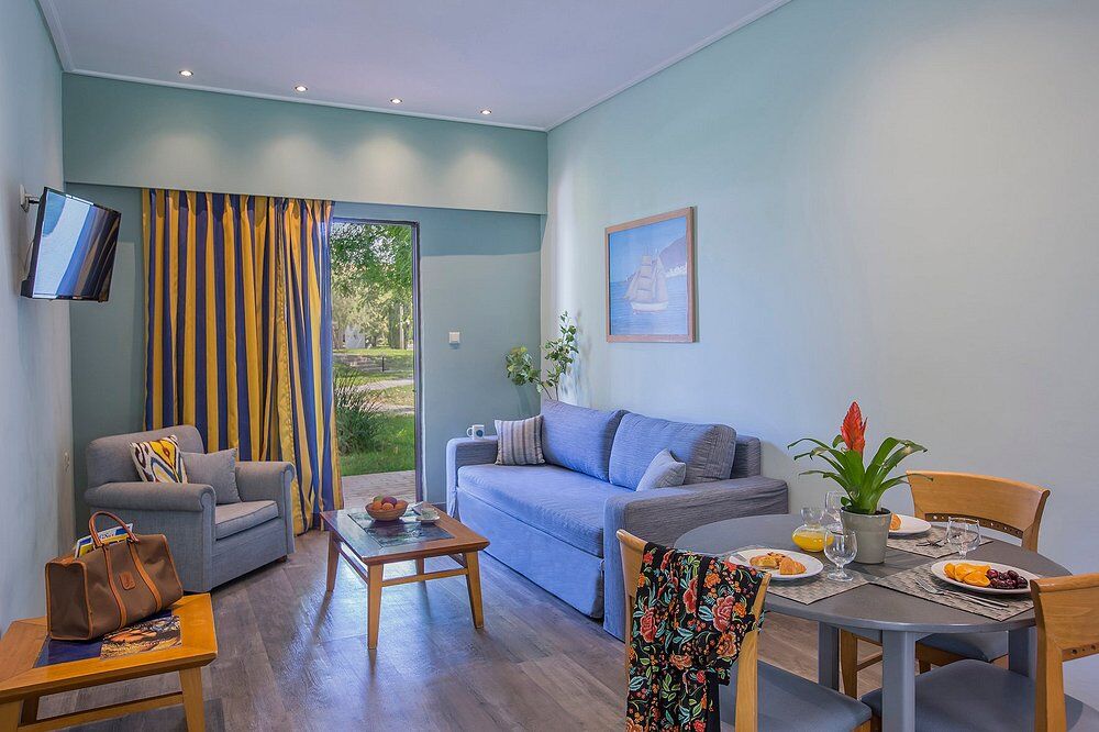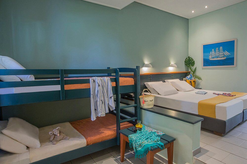 The resort features a wide range of accommodations, from cozy single and double rooms to family bungalows and VIP suites. Each room is equipped with modern comforts like air conditioning, a mini-fridge, safety deposit box, and satellite TV, and most include a private balcony or terrace with views to the garden or sea.