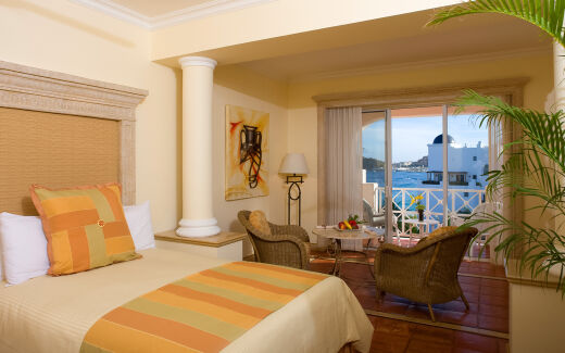 The spacious and beautifully appointed rooms at Pueblo Bonito Rose combine comfort with style, featuring contemporary décor and sweeping views of the Sea of Cortez or the resort’s lush gardens. Each unit is equipped with a private balcony, luxurious bedding, and modern conveniences such as flat-screen TVs, minibars, and Wi-Fi. The resort offers a range of accommodations, including studio suites, one- and two-bedroom suites, and penthouses - perfect for couples, families, or small groups seeking both intimacy and convenience during their stay.