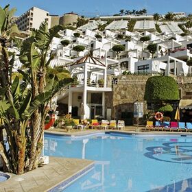 Bahia Blanca has a spectacular location, nestled in a steep hillside about one kilometer from the beach at Puerto Rico on the sunny south coast of Gran Canaria. Each unit has a terrace or garden, taking full advantage of the spectacular sun and ocean views below. A funicular allows easier access to the upstairs units. Puerto Rico is a popular resort, with a sandy beach and a good selection of shops, restaurants, and cafe's. A car is recommended to enjoy the area.