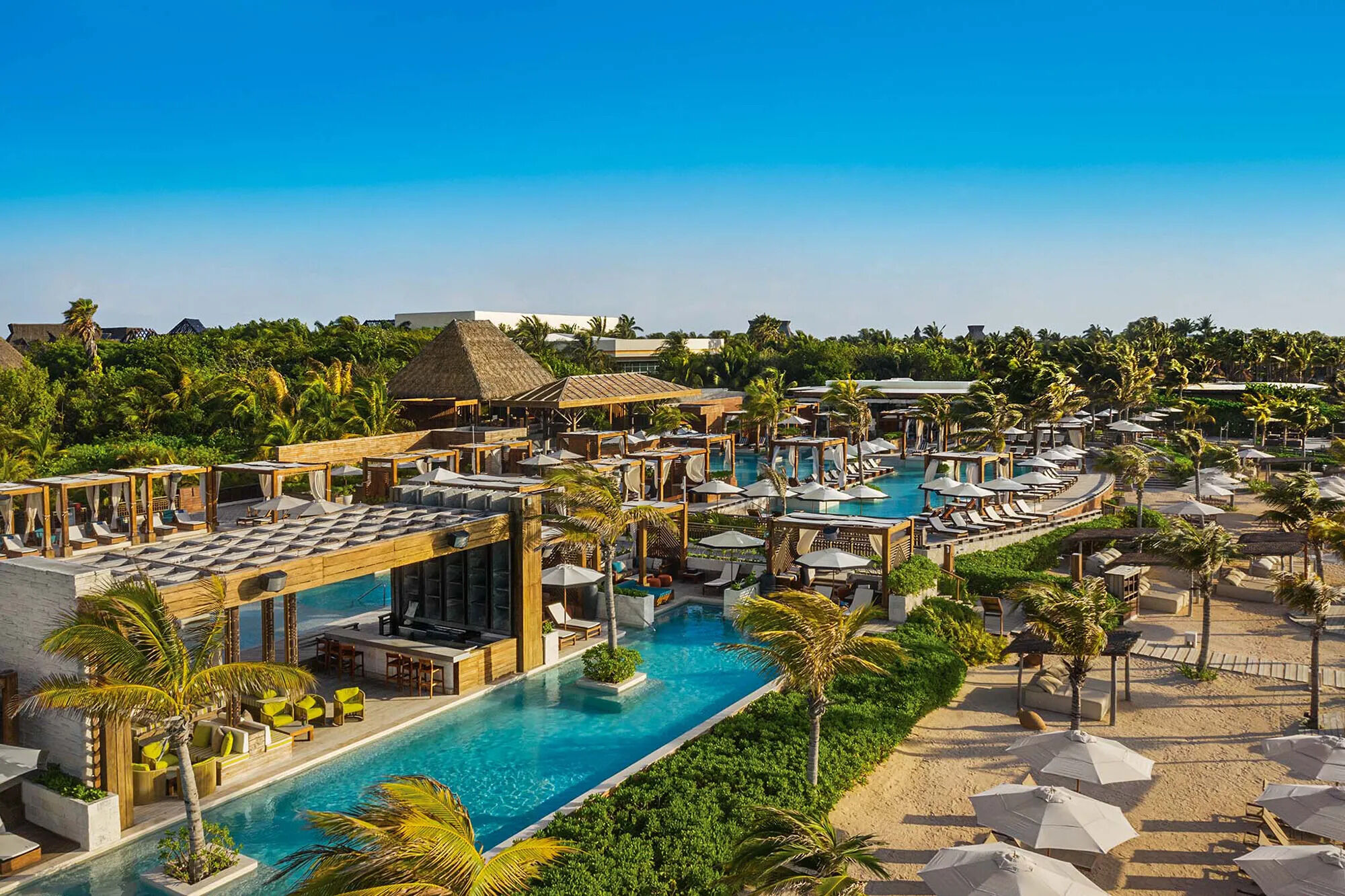 Experience the Mayan Palace at Vidanta Riviera Maya -- sitting along the tranquil coast of the Caribbean and expanding over 1,000 acres of paradise -- to feel the essence of luxury vacationing. With warm and inviting accommodations half of the resort is located along a scenic golf course, while the other half is closer to the sprawling beachfront pool with waterfalls, fountains, and a full bar. A vast selection of dine and drink options are available, as well as two spas & fitness centers. A can't-miss part of a Vidanta Riviera Maya stay is The Jungala Aqua Experience, featuring the longest lazy river in Latin America and a cutting-edge wave pool. Another highlight is the Cirque du Soleil Theater for JOYÀ, the only permanent Cirque du Soleil show outside the United States. Guests here are centrally located, only a short drive away from the relaxed vibes of Playa del Carmen, a short ferry away from the island of Cozumel, and only a short drive to have an excellent day trip to the ancient Mayan city of Tulum.