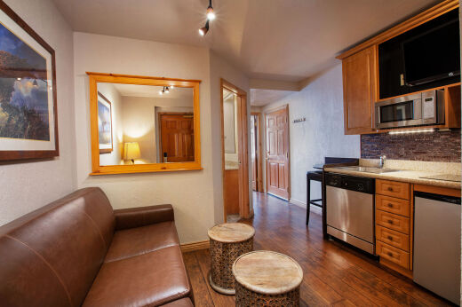 The resort’s villas range from cozy studios to expansive multi-bedroom suites, each designed with comfort in mind. Accommodations feature full kitchens or kitchenettes, fireplaces, private balconies, and jetted tubs, along with modern conveniences like flat-screen TVs and free Wi-Fi. Larger suites include separate living and dining areas as well as in-unit washer/dryers, making them ideal for families or longer stays. Whether you’re warming up by the fire after a day on the slopes or enjoying mountain views with your morning coffee, these villas provide a welcoming retreat.