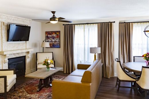Spacious accommodations range from studios to one- and two-bedroom villas, each thoughtfully designed to feel like a home away from home. Villas include full kitchens or kitchenettes, separate living and dining areas, washer and dryer, multiple televisions, and private patios or balconies. Comfortable furnishings and generous layouts provide plenty of room to relax after a day exploring Las Vegas or enjoying the resort’s amenities.