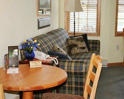 Located on five acres on top of the hill in Sister Bay, the Birchwood Lodge occupies a prime location, boasting walking distance to the beach, as well as to many area shops and restaurants. During your stay, enjoy access to two heated pools (both indoor and outdoor), whirlpool hot tub, fitness center, tennis court, game room, business center, gas grills and clubhouse with TV and a library.