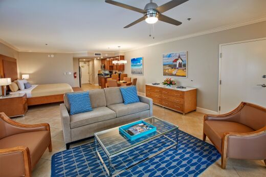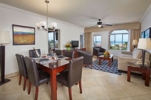 Divi Village features over 160 beautifully-designed villas, each crafted to feel like a true home base in Aruba. Every unit includes a fully equipped kitchen, comfortable living and dining areas, and a private balcony or patio overlooking the resort’s gardens, pools, or fairways. Studios and one-bedroom suites sleep up to four guests, while larger two- and three-bedroom suites offer ample room for families or groups, accommodating up to six and eight guests.