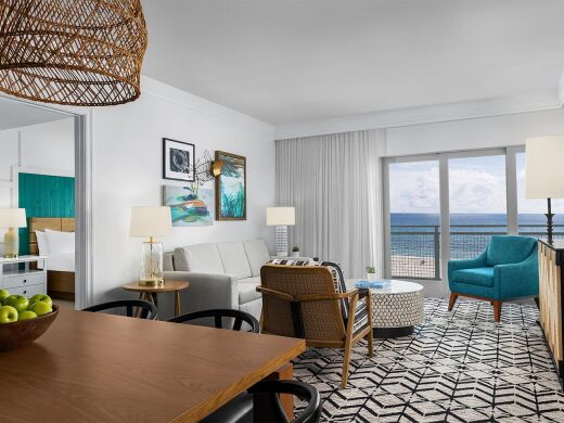 At Marriott's Oceana Palms, guests can expect unparalleled comfort and convenience with two-bedroom, two-bathroom villas. Each comes fully outfitted with fully-equipped kitchens, open and spacious floorplans, 40" flat-screen TV's with Blu-ray players, plush kind beds in the master suite, oversized shower with dual showerheads, in-villa washer/dryer and a fully furnished, private balcony.