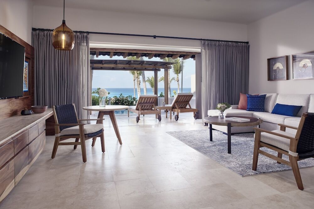 Accommodations are in three-story casitas surrounding the main building, which holds the lobby, cultural center, restaurants, and pool. Every guest room offers breathtaking views of the ocean from a large terrace or balcony. Most suites also offer a private plunge pool, a separate sitting room, a bar, and a powder room.