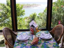 The resort features beach front suites and rooms with a large veranda, offering spectacular ocean and beach views, comfortable beds (king or two singles), hardwood and rattan furniture, and Italian tiles.