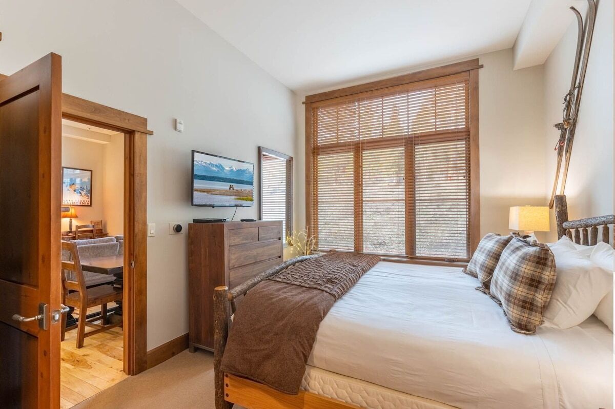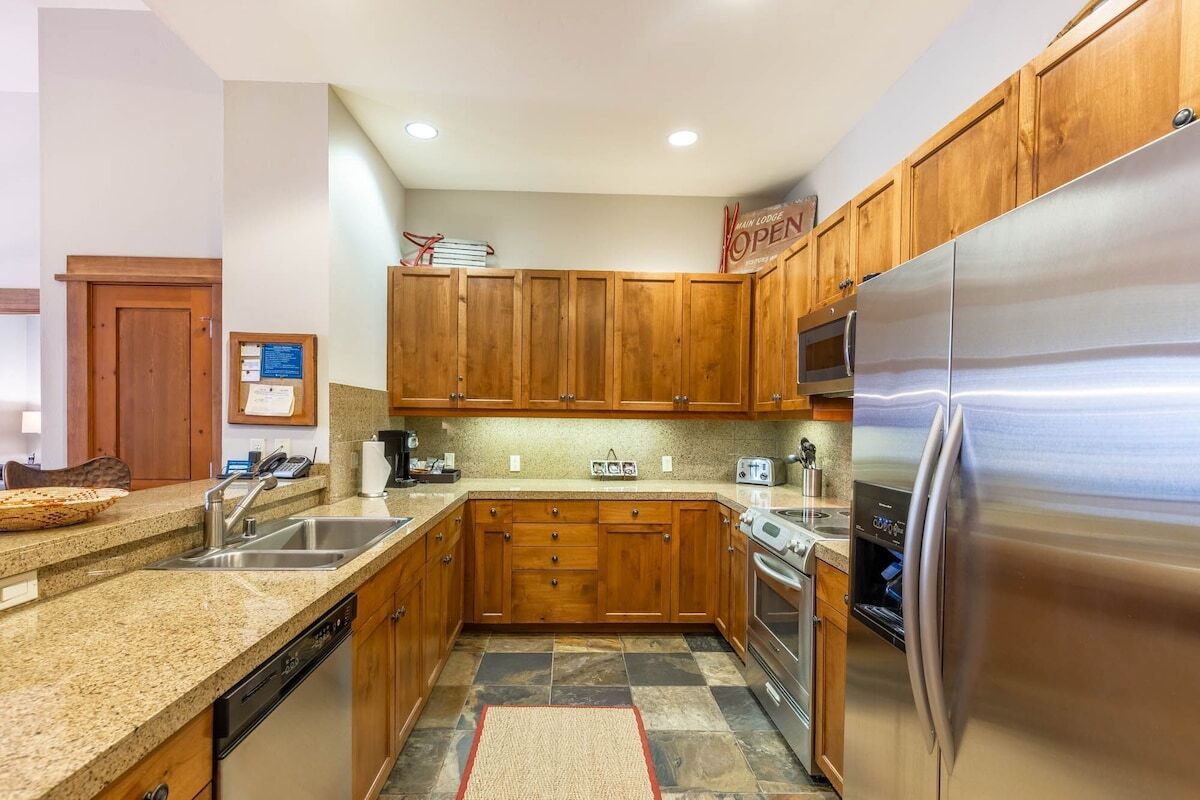 All one, two and three-bedroom residences offer plenty of room to spread out and relax. Full kitchens decked out with stainless steel Viking appliances let you cook up meals in style, and the separate dining area is perfect for enjoying them! In the living room, you'll find a gas fireplace and a 50" plasma TV with sound system and DVD player, as well as access to a private balcony complete with outdoor fireplace and seating. In-room washer and dryer keep handling laundry convenient, and upscale details like hickory floors and alder cabinets truly elevate your experience.
