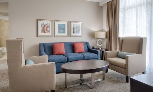 Wyndham Vacation Resorts at National Harbor offers a variety of accommodations ranging in size from one-bedroom suites to sprawling three-bedroom presidential villas. No matter what size is ideal for your group, count on amenities like a full-size kitchen, dining area, cable TV, DVD player, private balcony (in select units) and even whirlpool bathtubs. Each room is furnished with sleek, modern decor that exudes an inviting yet refined ambiance.