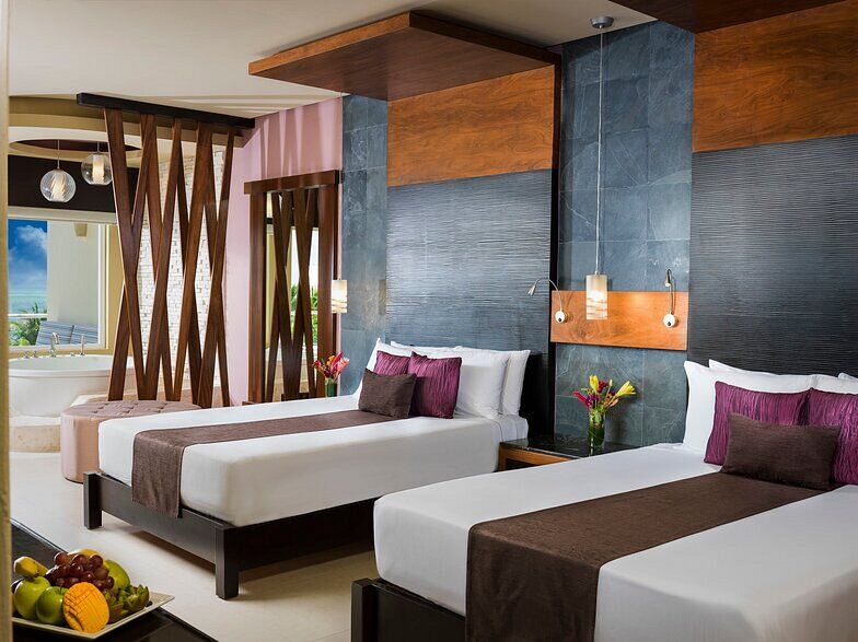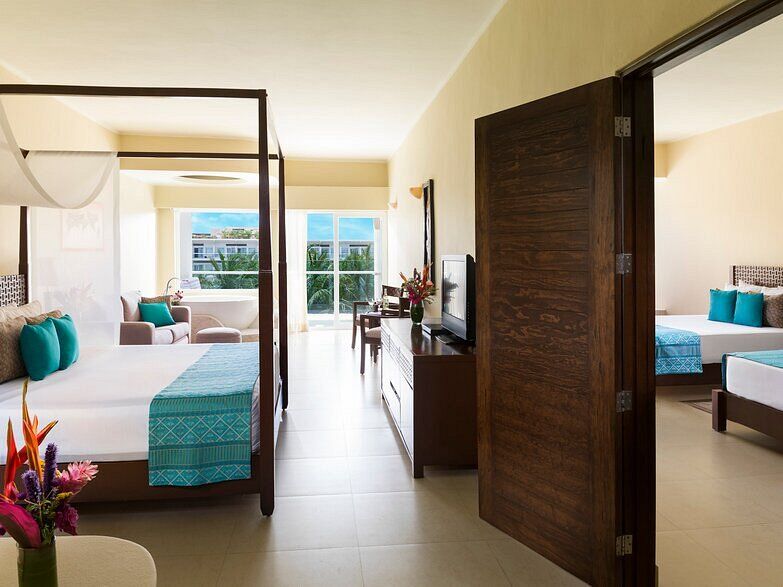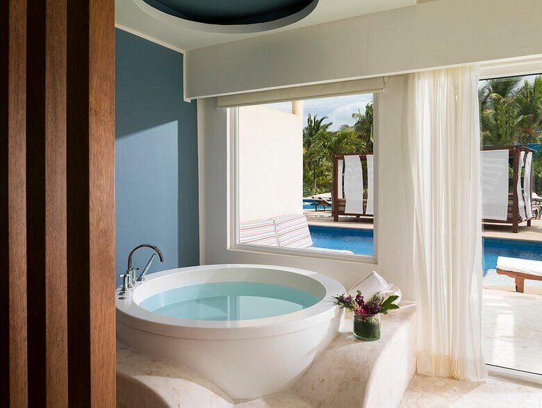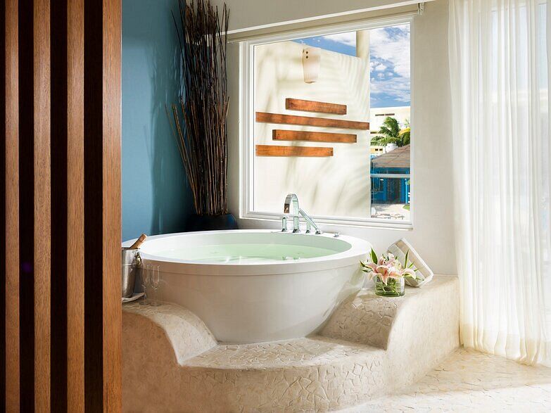 Azul Sensatori features never-before-seen suites with a heated Jacuzzi for two in the lazy river off the terrace. There are also guaranteed family connecting suites, adults-only and premium sections, and honeymoon suites with wrap-around balconies.