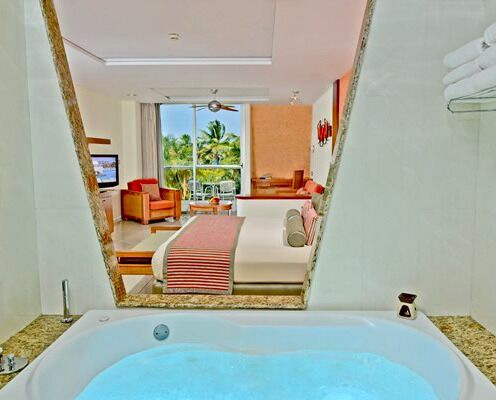Grand Sirenis Riviera Maya Resort & Spa offers a wide variety of rooms ranging from junior suites to expansive two-bedroom presidential suites. Regardless of what confirmation you opt for, count on a living area, Wi-Fi access, complimentary bathrobe and slippers, double whirlpool, furnished balcony and massage jet shower. Upgraded configurations offer even more luxuries, such as computer areas, complimentary champagne and chocolate, Playstation 3 systems, hydromassage bath and terraces outfitted with Balinese beds, bar and even a small pool!
